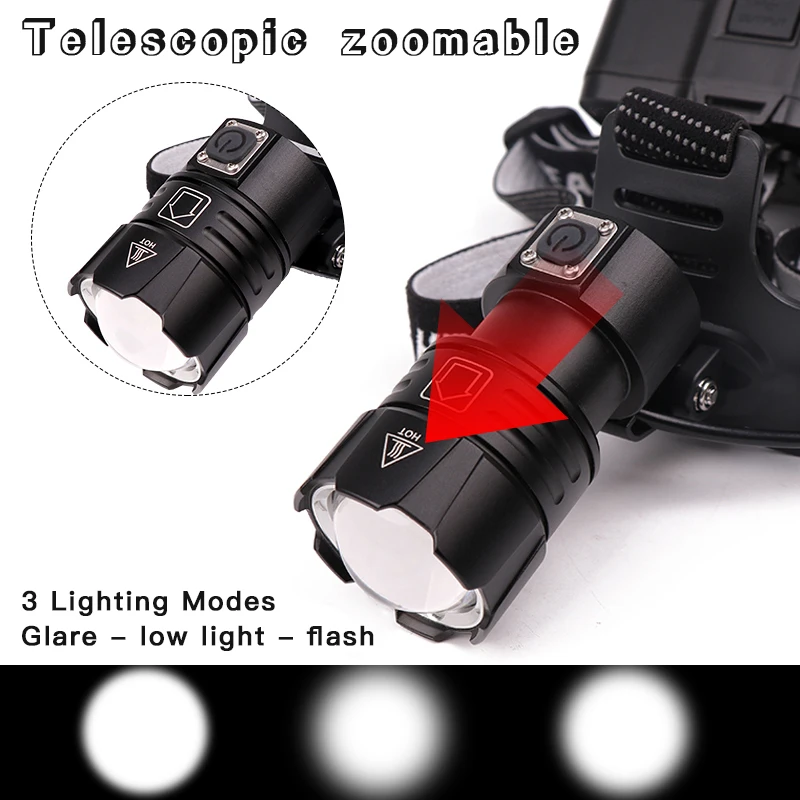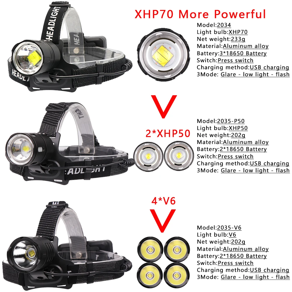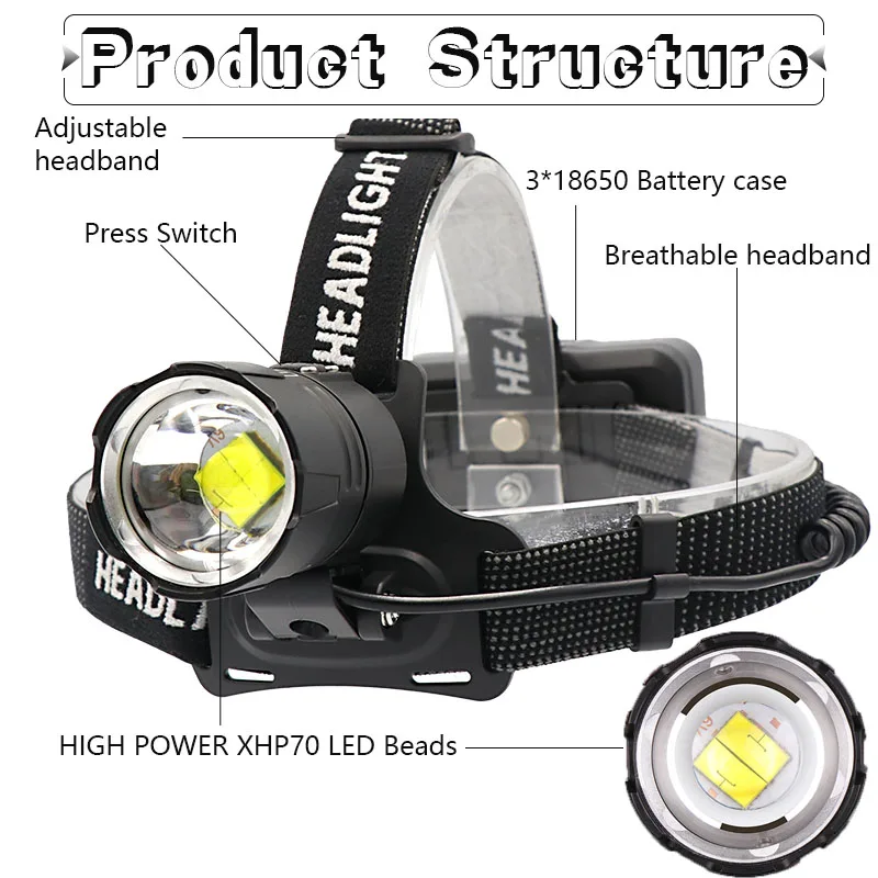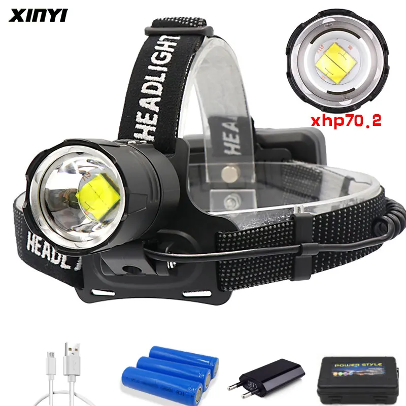 Мощный светодиодный налобный фонарь XHP70.2XHP50, фонарь с 3 режимами масштабирования, уличный фонарь для рыбалки, кемпинга, 900 люмен