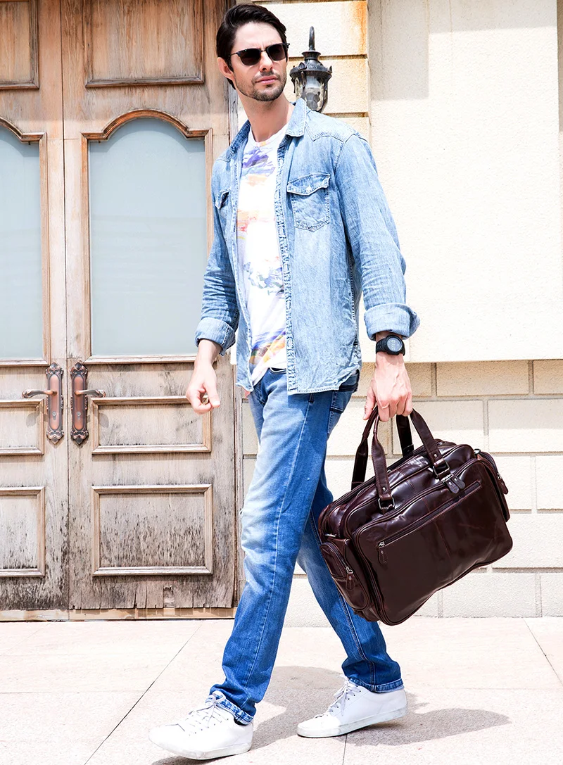 Портфель мужской из натуральной кожи, мягкая многофункциональная сумка-мессенджер на плечо из воловьей кожи, для ноутбука, 3 отделения, тоут