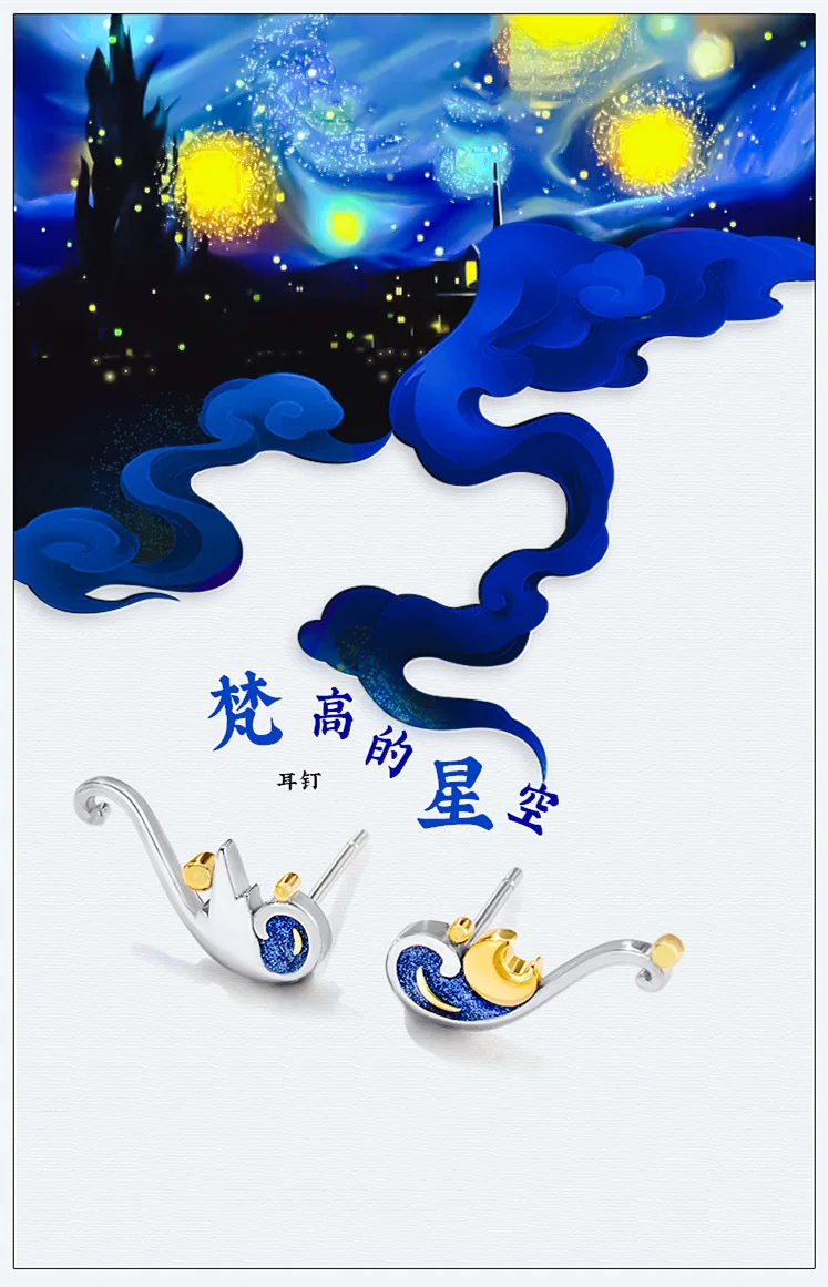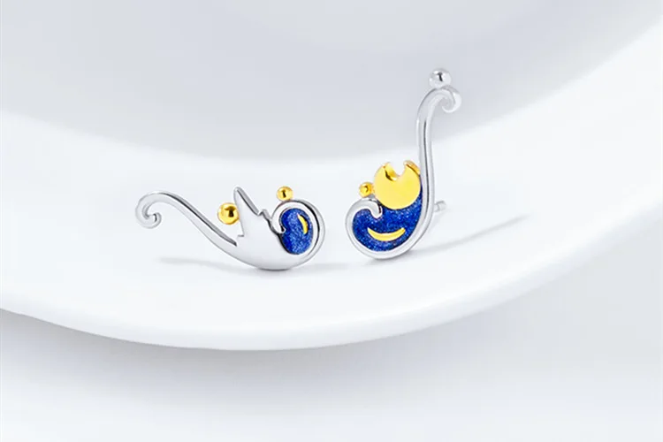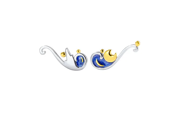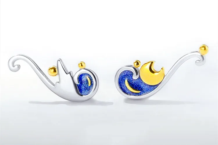Новые креативные серьги-гвоздики с бородатым полумесяцем из стерлингового серебра 925 пробы, простые эпоксидные серьги в стиле Mori Van Gogh Star SE929