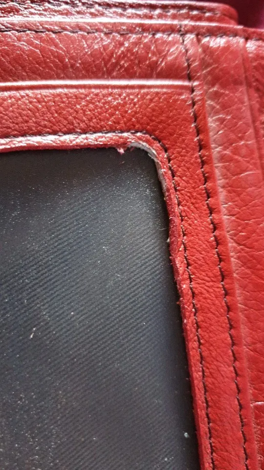 Дизайн такой же, как на фото продавца. Прошит аккуратно. Натуральная кожа или нет не понятно, так как запах натуральности отсутствует. Материал кошелька жестковат, не удобно дожить в него деньги, монетница большая, удобная