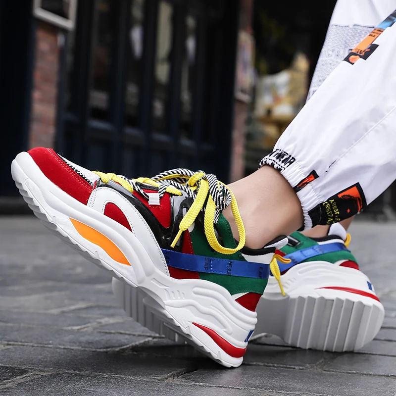 Кроссовки мужские и женские из ПУ кожи, на высоком каблуке 6 см