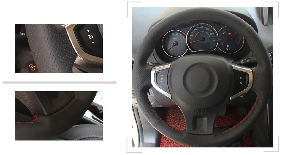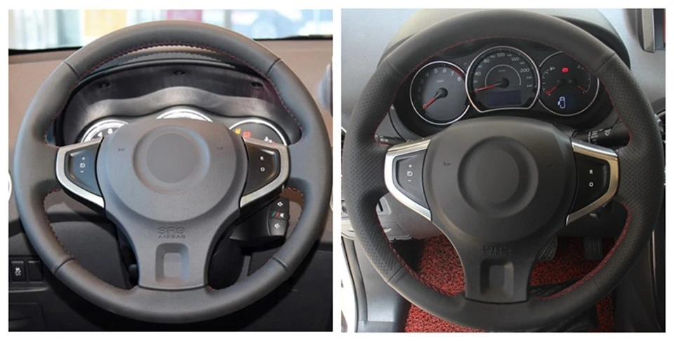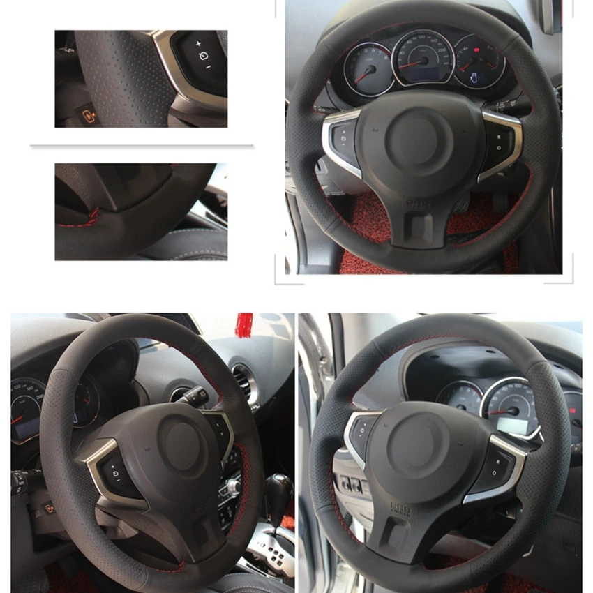 Черная искусственная кожа Чехол рулевого колеса автомобиля красный ...