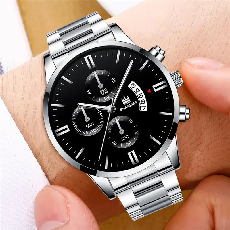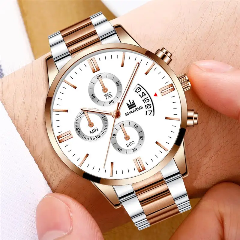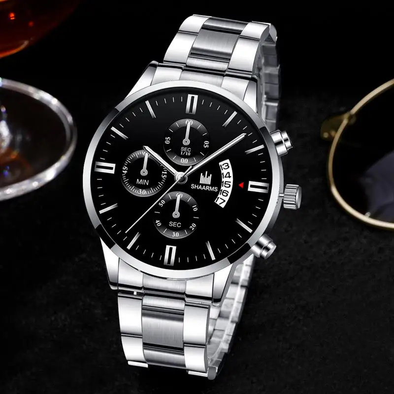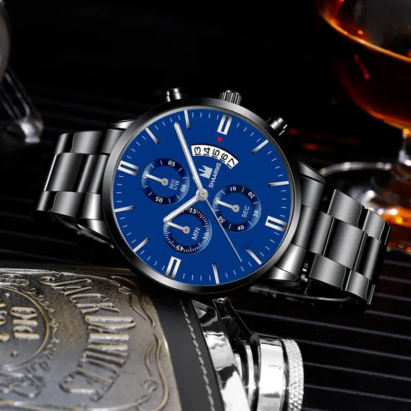 Модные мужские Роскошные деловые часы из нержавеющей стали, аналого...