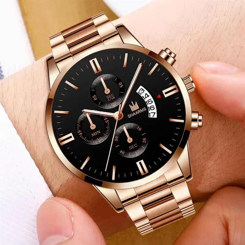 Мужские Роскошные Бизнес Кварцевые военные часы золотой браслет из нержавеющей стали мужские часы Дата Календарь Мужские часы Relogio дропшиппинг