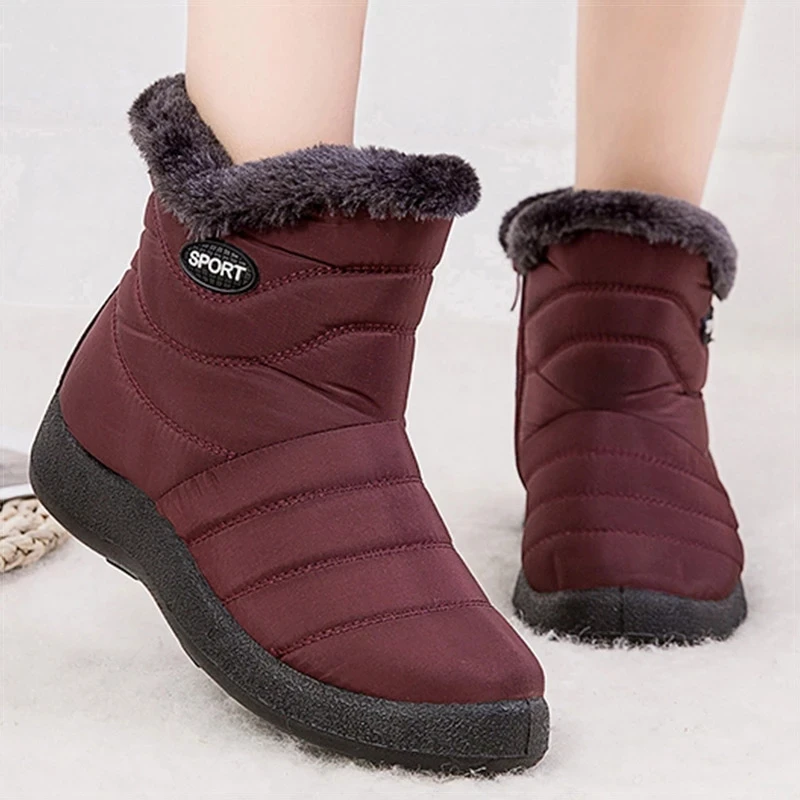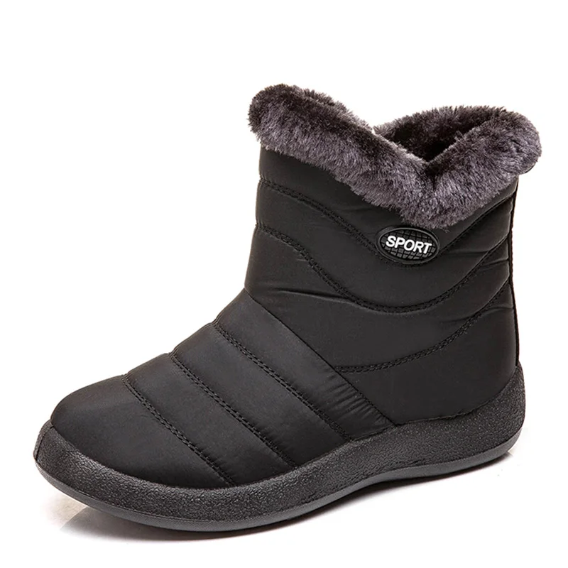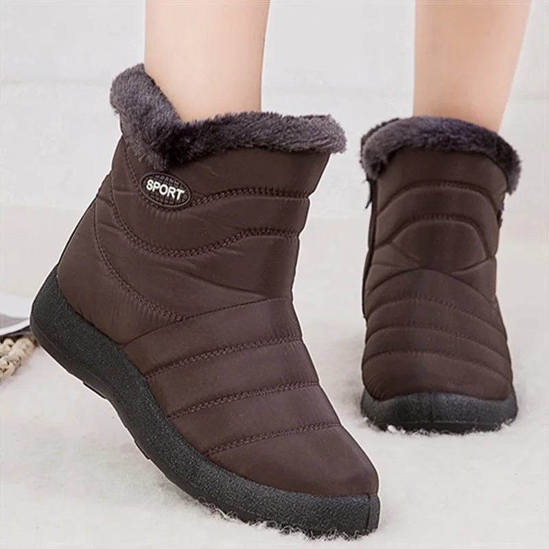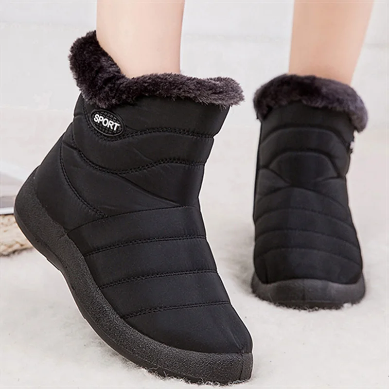 Модные женские сапоги, теплые меховые сапоги для снега, Женская водонепроницаемая обувь, женские сапоги без застежек, Черная Женская обувь с круглым носком