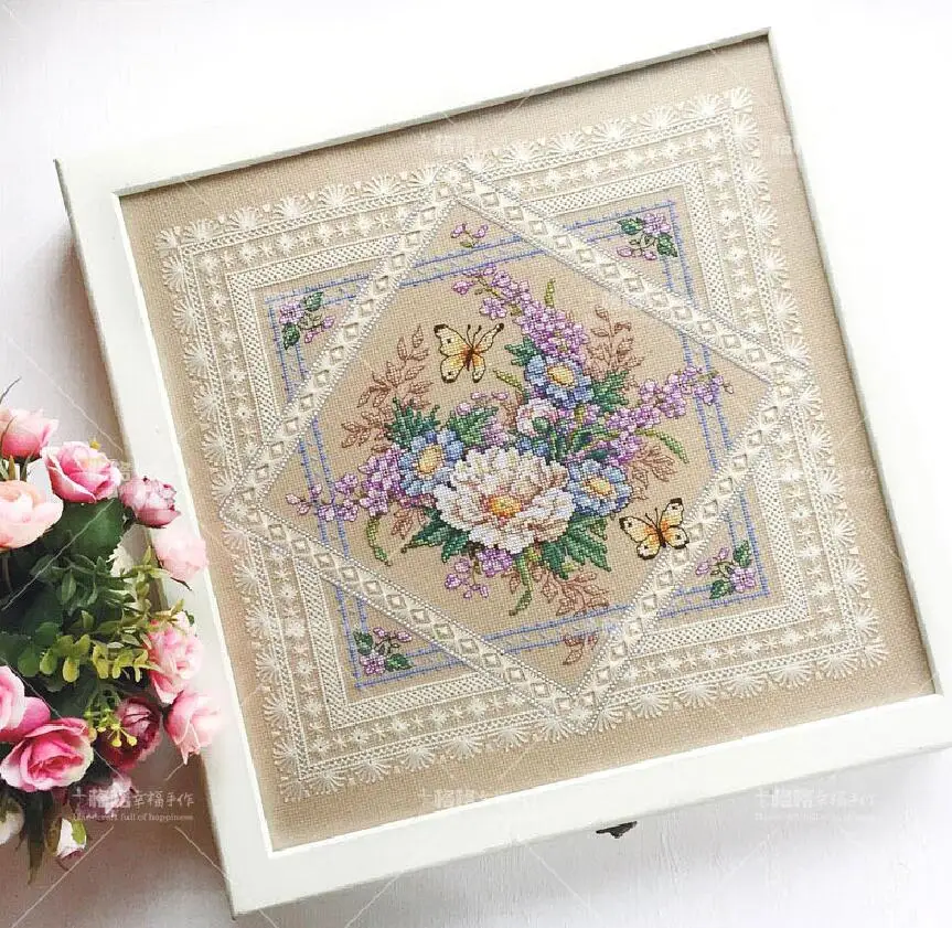 Набор для вышивки крестиком с цветами и кружевами, хлопковая нить с бабочками, 18ct, 14ct, 11ct, льняной холст, вышивка сделай сам