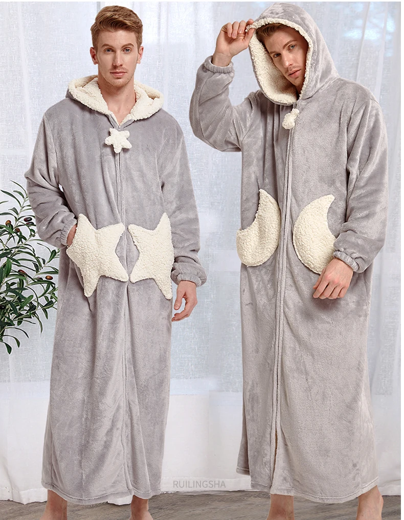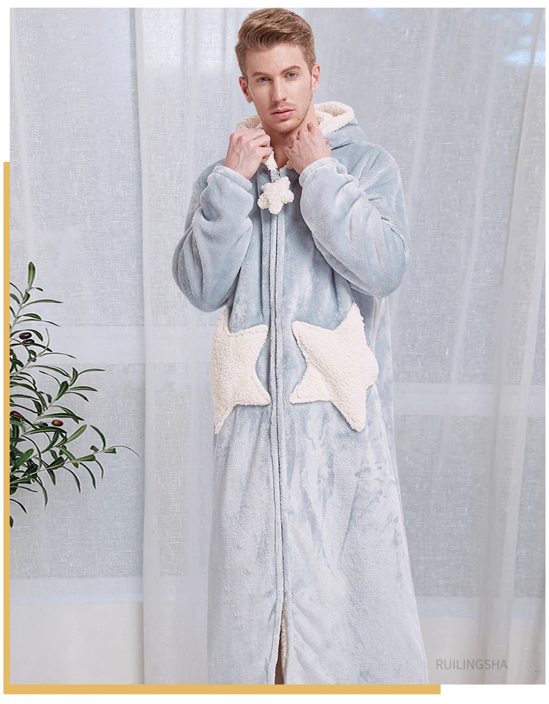 Зимние женские и мужские размера плюс теплый фланелевый Халат с изо...