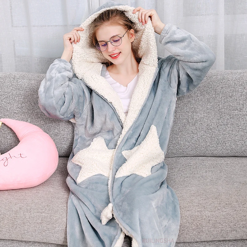 Халат фланелевый женский, зимний, с капюшоном, на молнии, длинный, теплый, размера плюс