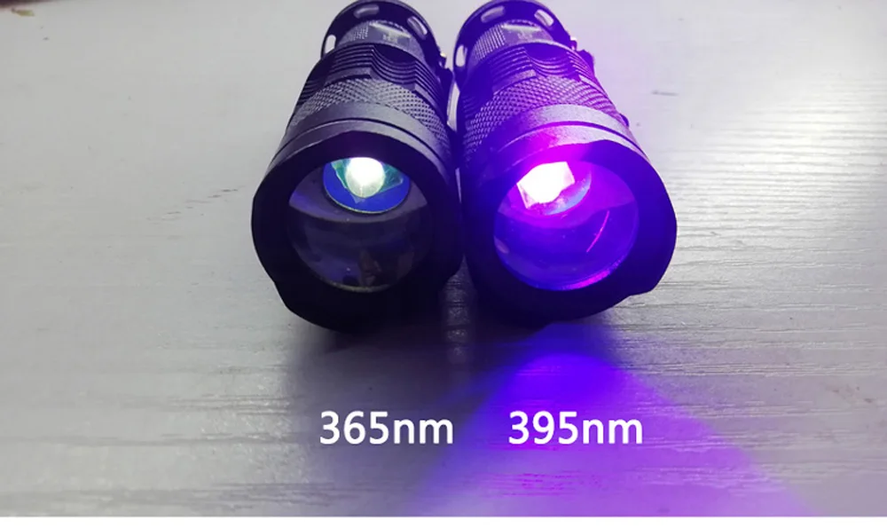 О разнице между 365нм и 395нм:395нм УФ-Ультрафиолетовый светодиодный фонарь для обнаружения подделок, охоты, животных, отслеживания крови, удостоверения личности и проверки документов, минеральное освещение и Идентификация животных и вредителей, пятна мочи, освещение скорпиона;УФ-Фонарик 365nm подходит для различных задач, таких как Пешие прогулки, кемпинг, EDC освещение, ФЛУОРЕСЦЕНТНОЕ обнаружение, обнаружение пятен мочи домашних животных, обнаружение фальшивых, проверка удостоверений личности, камни и минеральные светящиеся и так далее.