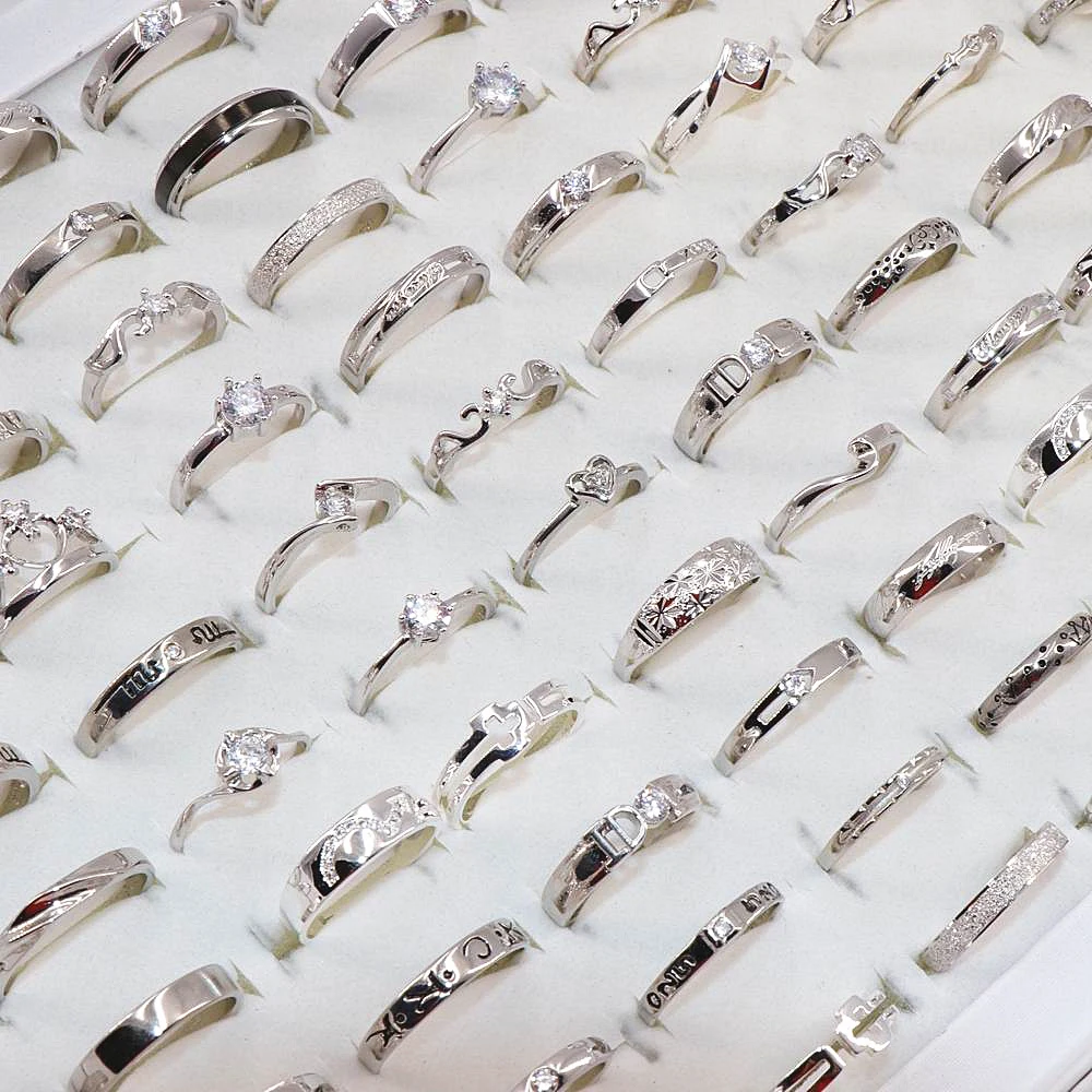 Тип Металлов: медь + посеребренныйМатериал: кристаллКоличество: Упаковка из 50 шт.Размер: 6 7 8 9 10 отправляется случайным образомСтиль: смешанный стиль отправляется случайным образомИзящный или модный: МодныйТип кольца: свадебные кольцаПоверхность Ширина: около 4,5 ммПовод: помолвкаТип товара: кольцаПосылка: OPP bagЦвет: серебристыйПовод: вечерние, Помолвочные, юбилейные, свадебныеВозможность: высокое качество, лучший сервис, быстрая доставка