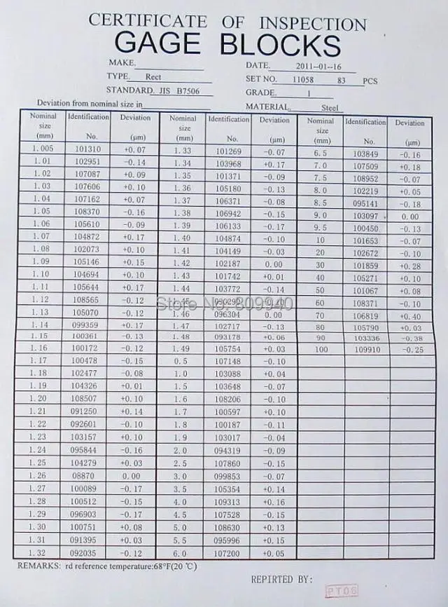 1,005-100 мм 0 Класс блок манометр inpsection блок 83 шт.компл., 1 ...
