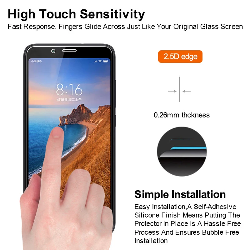 Закаленное стекло для Xiaomi Redmi 7 7A защита экрана глобальная версия защитный чехол для смартфона чехол на тонком упрочненном