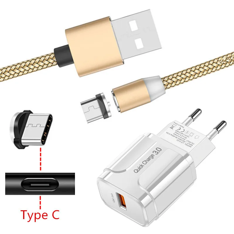 Быстрое зарядное устройство QC 3,0 USB, магнитный кабель типа C для...