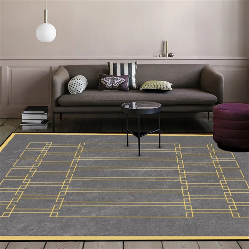 Скандинавский серый мраморный коврик с желтыми краями, квадратная строчка для гостиной, спальни, кухни, плюшевый ковер, индивидуальный пошив, прикроватный ковер