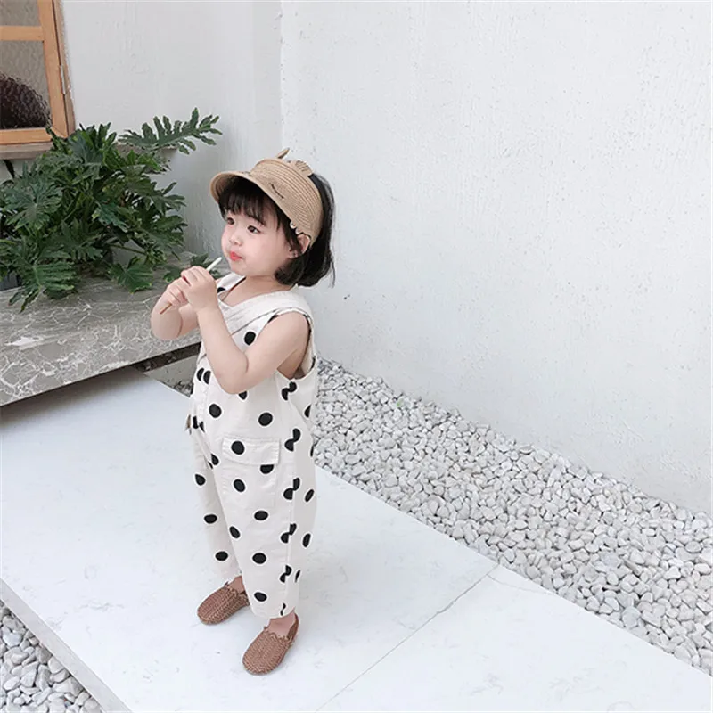 Комбинезон для девочек, милые летние штаны в горошек, новая детская одежда, одежда для маленьких девочек