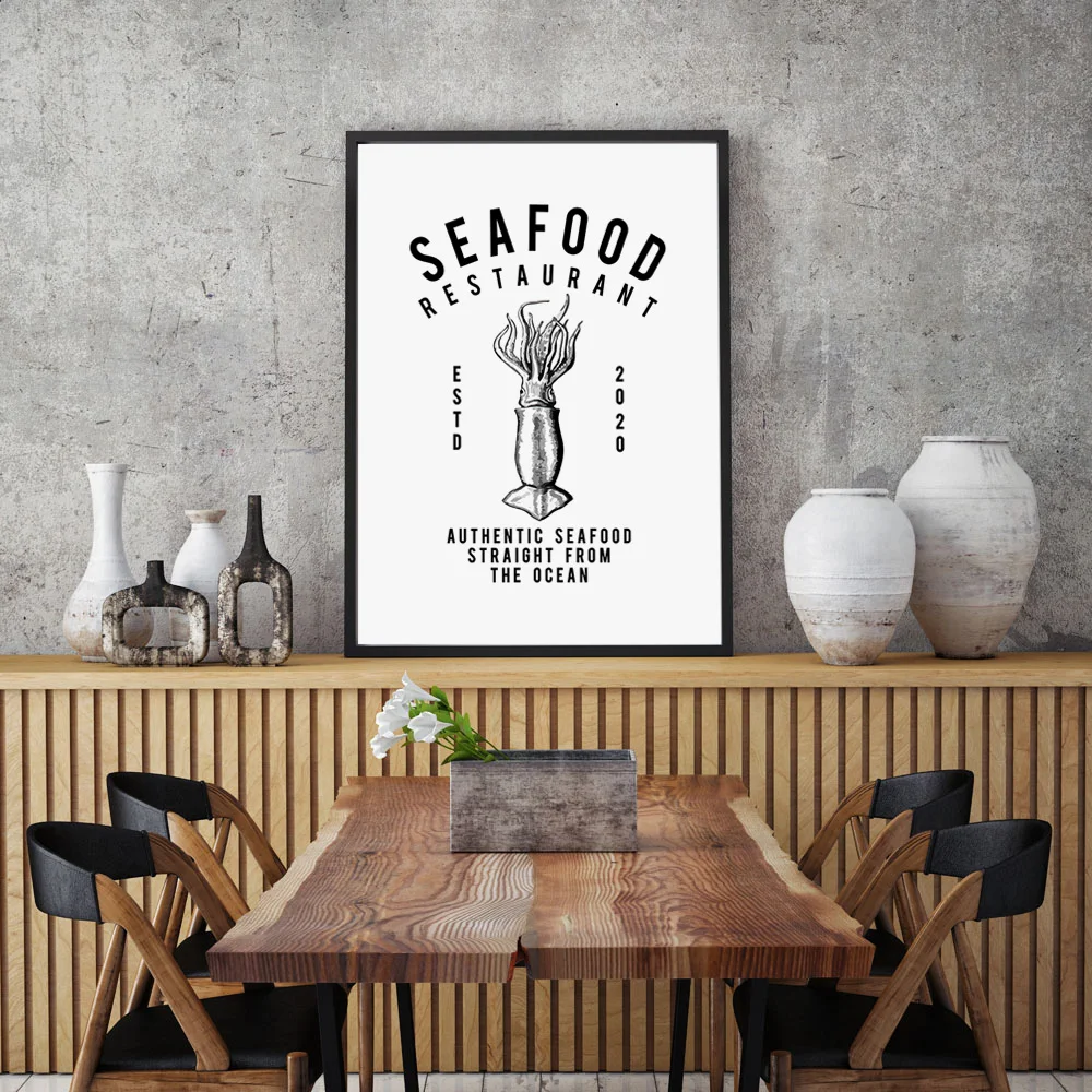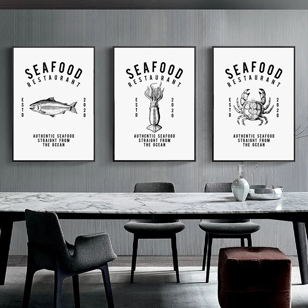 Морепродукты Омары каракатица, краб, рыба, настенная живопись на холсте, скандинавские постеры и печать, Картина Настенная, декор для кухни, ресторана