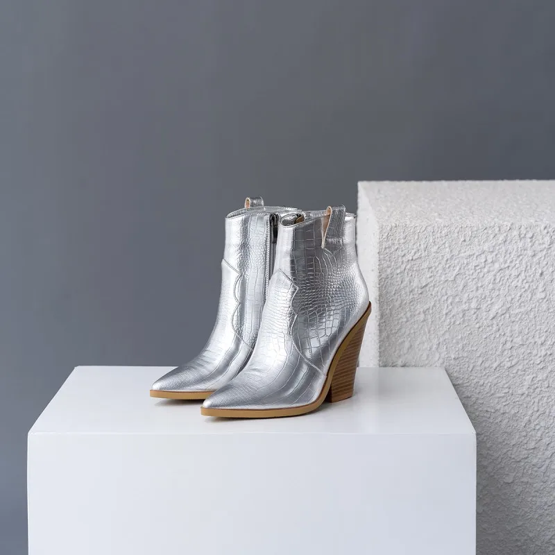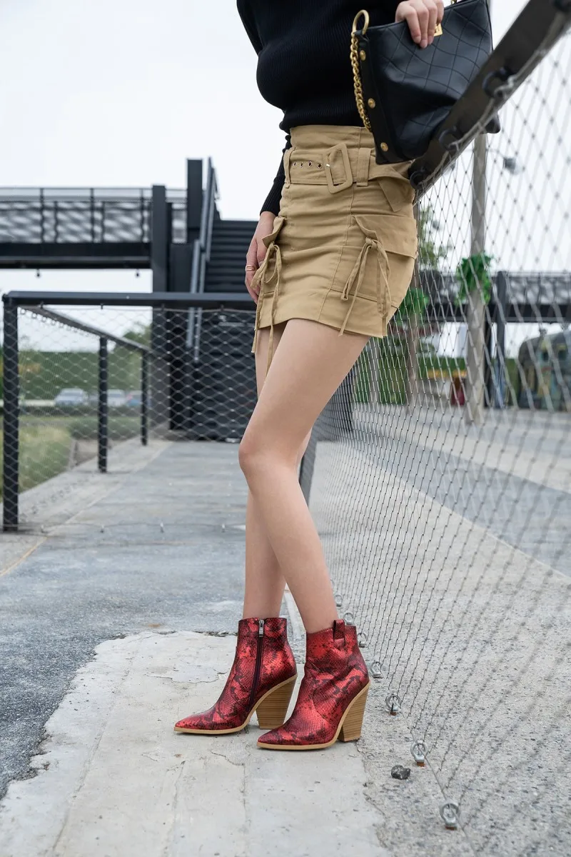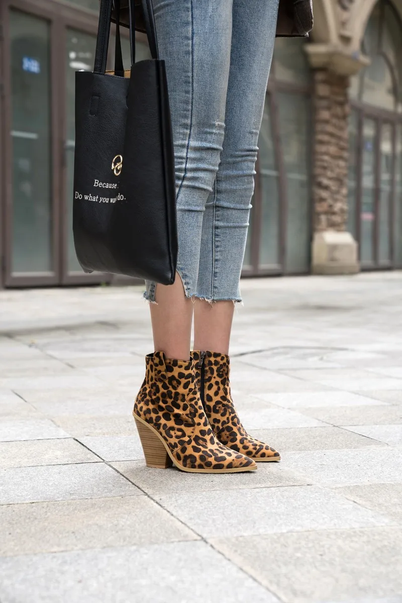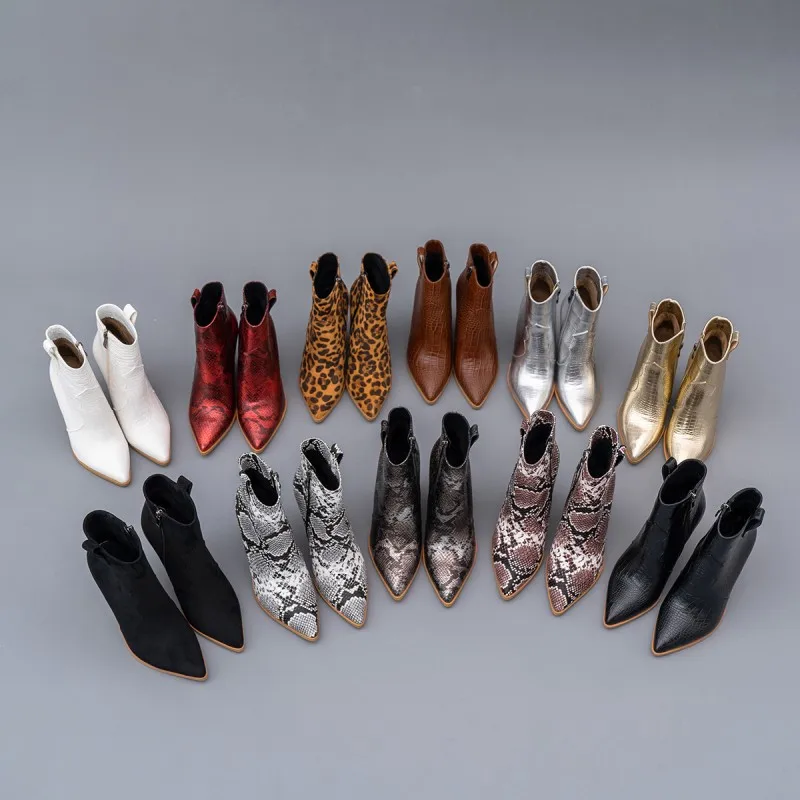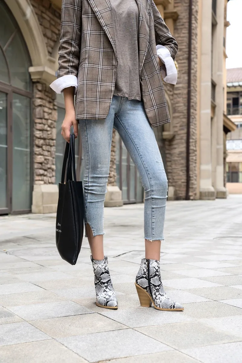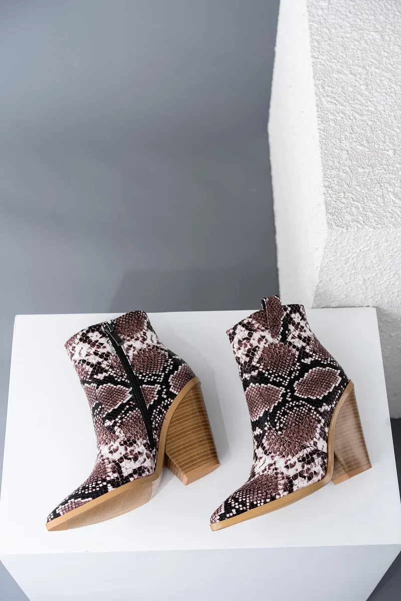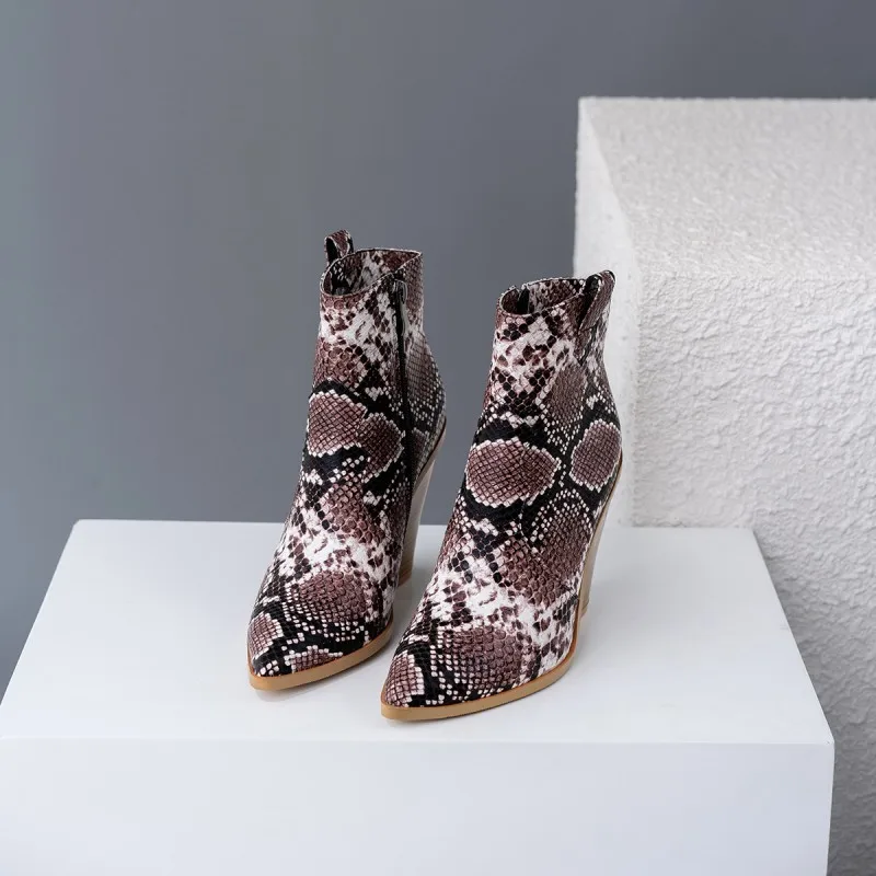 Женские ботинки на высоком каблуке, с принтом змеиной кожи