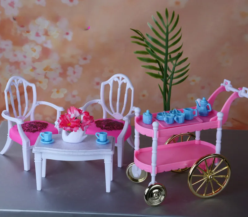 Чайный Игровой Набор для Барби, оригинальный обеденный стол 16 bjd bebek, мебель для кукол boneca, аксессуары для дома, детская игрушка
