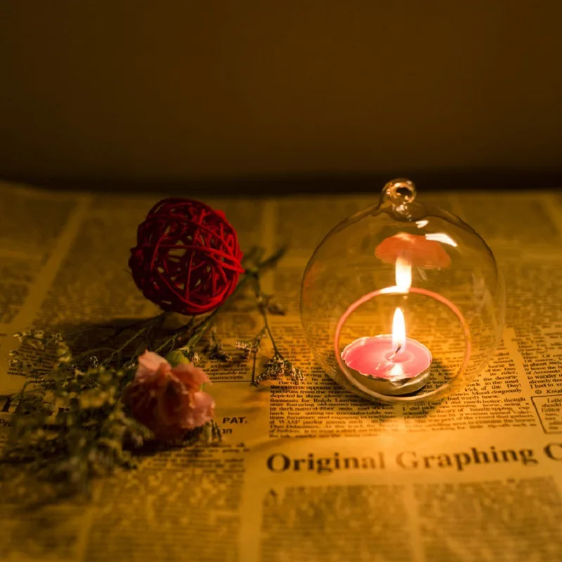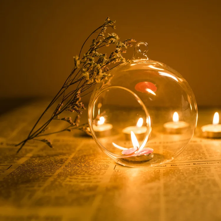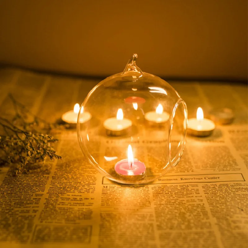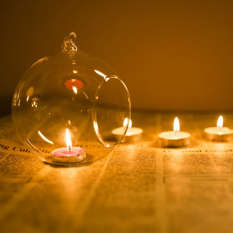 Стеклянный подсвечник, открывающийся полый шар, подвесное украшение для интерьера, поделки, контейнер для свечей