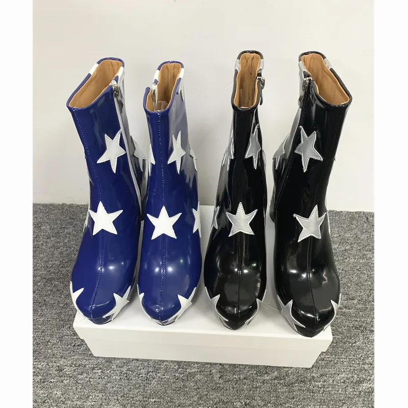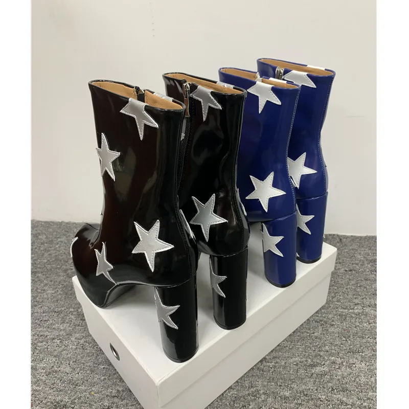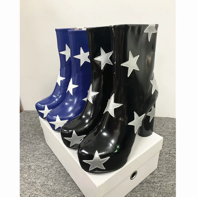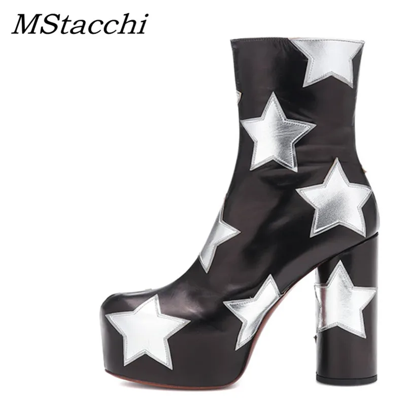 Женские ботильоны на платформе MStacchi, роскошные кожаные ботинки на высоком каблуке с принтом звезд, женские ботинки с круглым каблуком, 2022