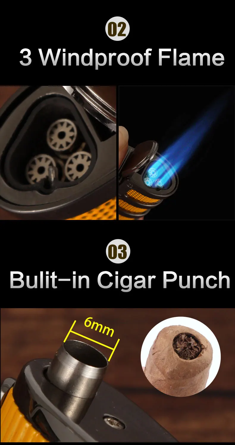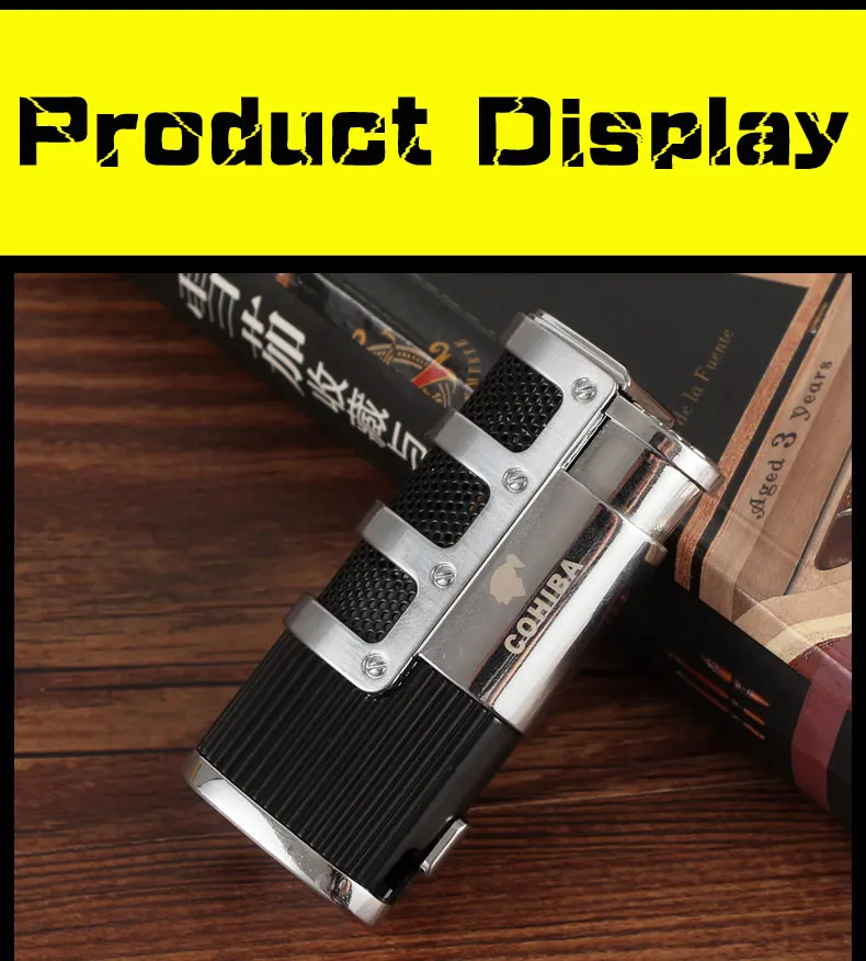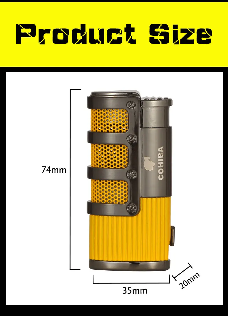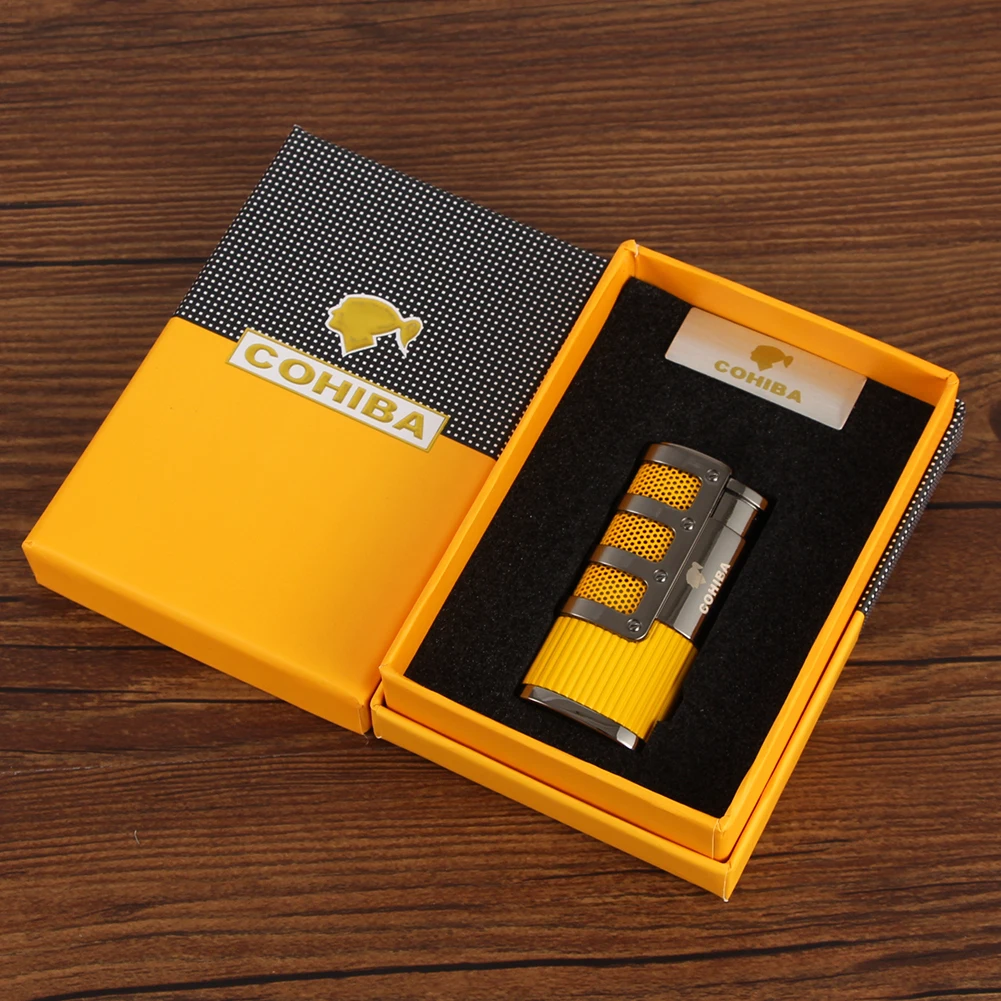 Зажигалка COHIBA, металлическая карманная Бутановая фонарь жигалка для сигар, ветрозащитная, 3 струи, аксессуары для сигар, с подарочной коробкой