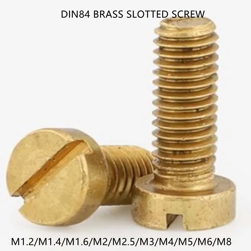 M1.2 m1.4 m1.6 M2 M2.5 M3 M4 M5 M6 M8 DIN84 латунный винт с шлицевой головкой, латунный винт, латунный болт длиной 3-30 мм
