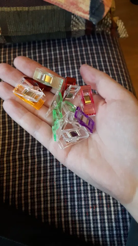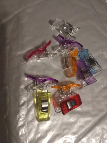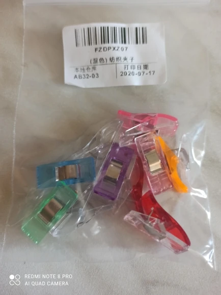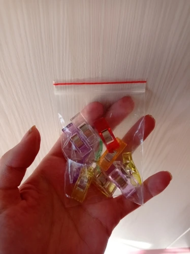 Прищепочки мелкие, разноцветные, использую при кройке и шитье. Очень удобные, хорошо держат ткани. Пришли через 2 месяца. Кто будет заказывать, хорошенько просчитайте, сколько их вам надо. 10 штук все-таки маловато, буду заказывать еще.