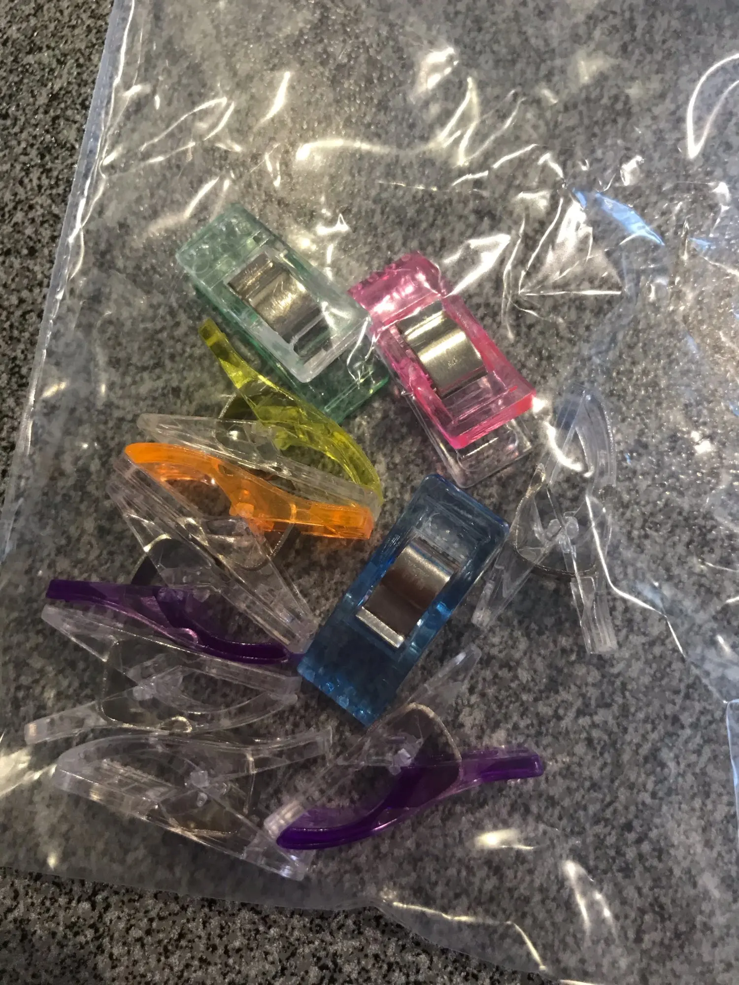 Зажимы пластиковые, разноцветные, окантовка шитье, 10 шт.