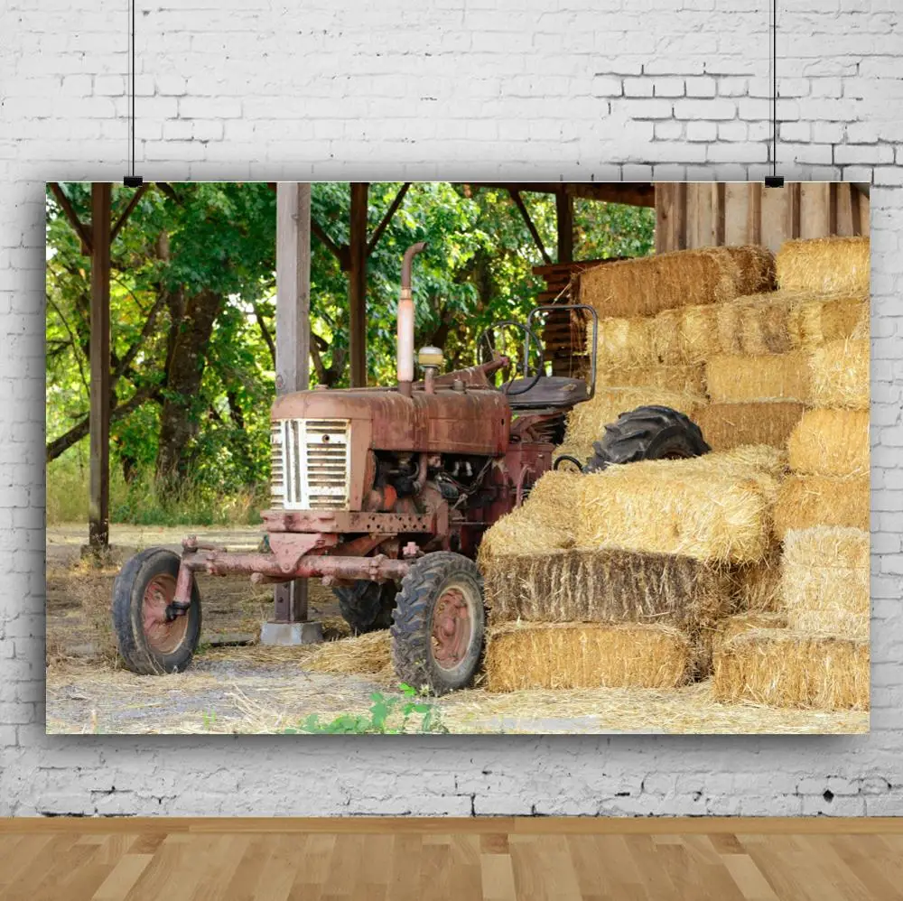 Фон для студийной фотосъемки детей с изображением осенней фермы деревни трактор сена День благодарения день рождения