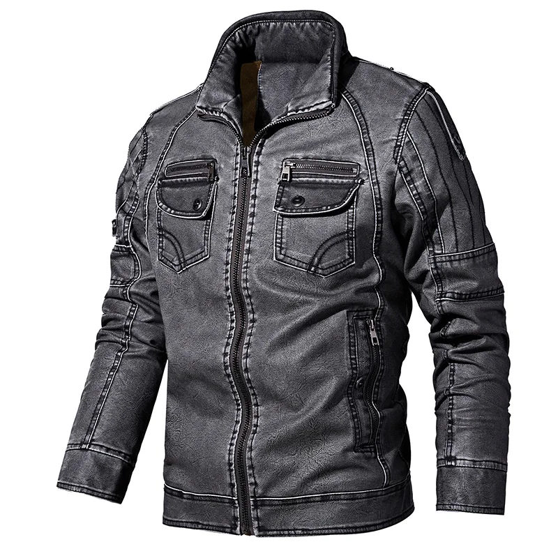 Мужские зимние кожаные куртки, Осенние деловые повседневные плотные флисовые пальто, Мужская модная мотоциклетная верхняя одежда, куртка из искусственной кожи