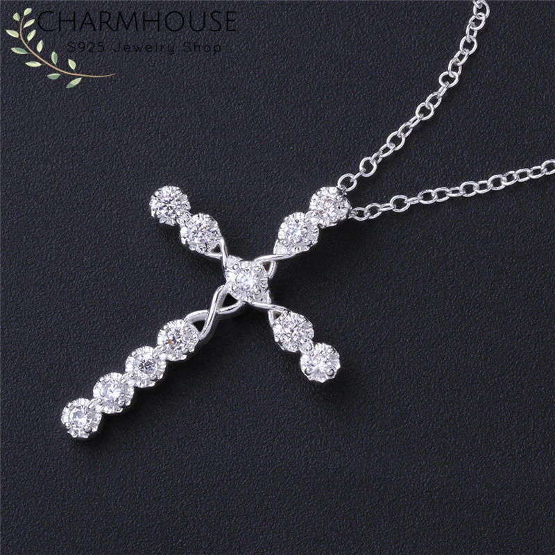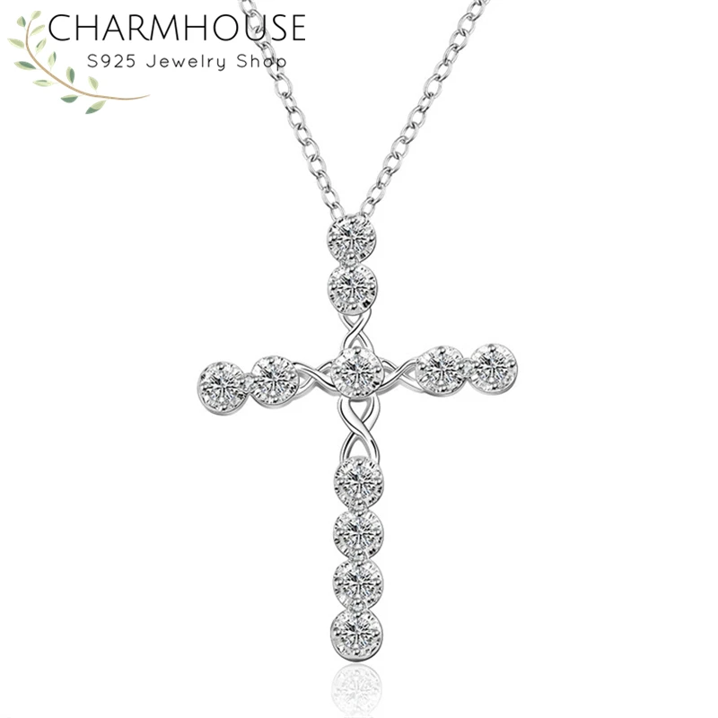 Ожерелья из чистого серебра 925 пробы для женщин, колье, женская подвеска в виде креста с кристаллами и цепочка, модные ювелирные аксессуары, бижутерия