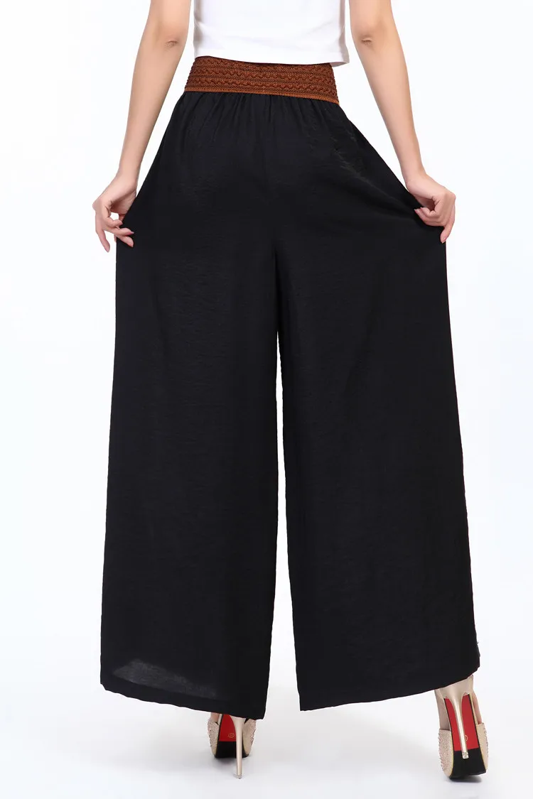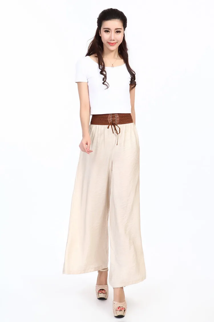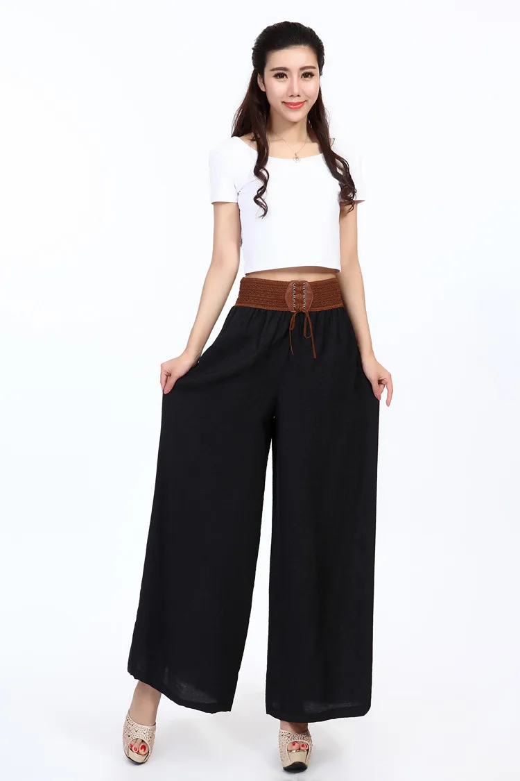 Корейский стиль женские богемные широкие брюки женские плюс размер 5XL 6XL 7XL хлопковые льняные брюки плюс размер винтажные брюки с поясом