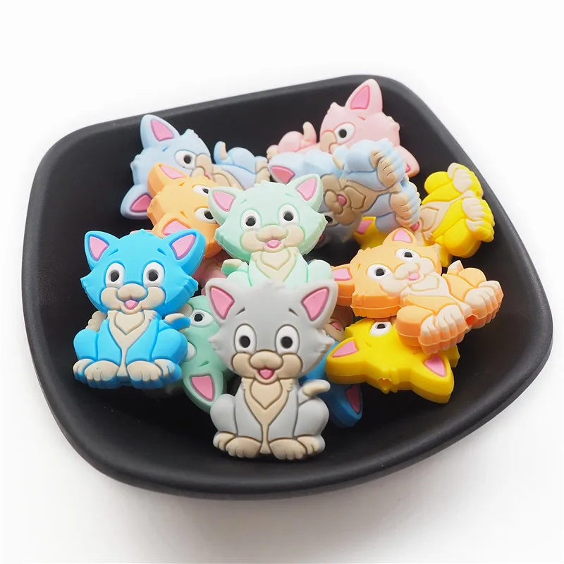 10 шт. силиконовые бусины для грызунок с котом Chengkai, Детские шарики для прорезывания зубов с мультяшным котенком