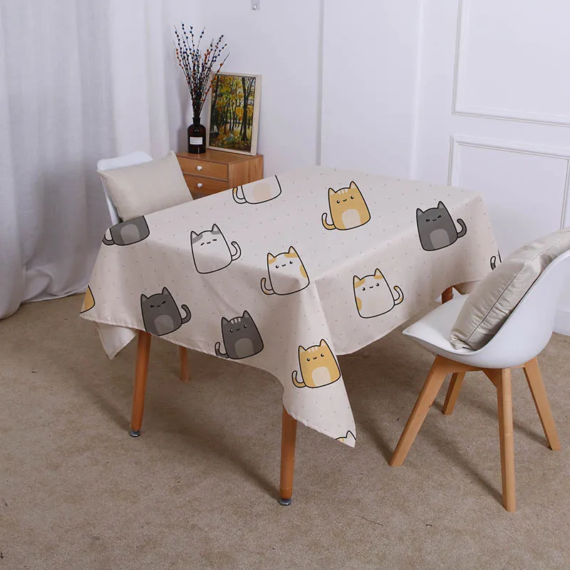 Водонепроницаемая льняная скатерть с мультяшными животными, кошкой, лошадью, крокодиловым черепом, украшение для стола, скатерть для дома и кухни