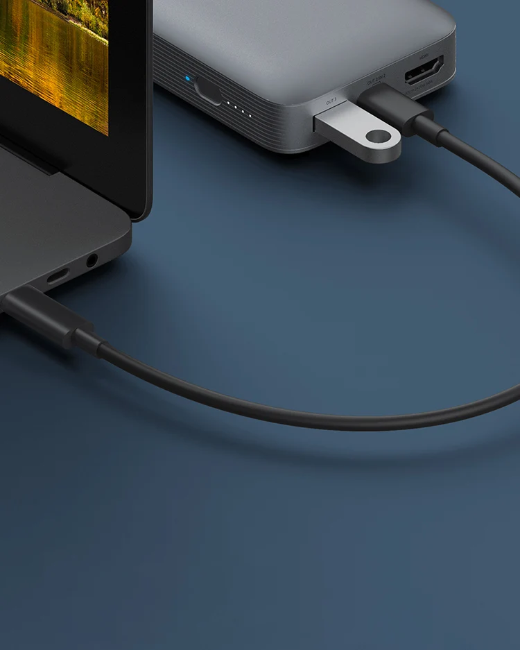 После того, как ноутбук с USB-C интерфейсом подключен к мобильному источнику питания, в режиме концентратора, USB-A интерфейс USB3.2 Gen1 ×1 может быть расширен, что удобно для внешнего U диска, мыши, клавиатура и другие устройства.