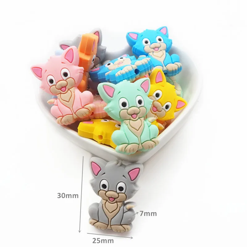 Chenkai 10 шт. силиконовые бусины для прорезывателя для кошек сделай сам котенок ожерелье-прорезыватель бусины для малышей мультяшная пустышка Игрушка аксессуары