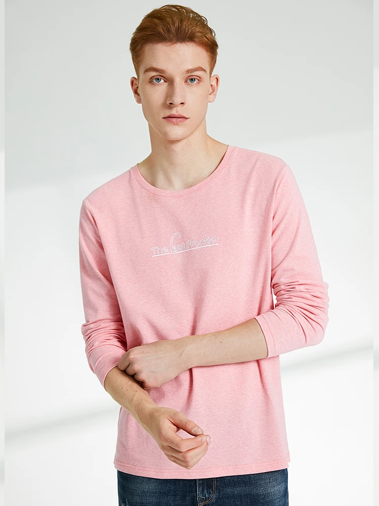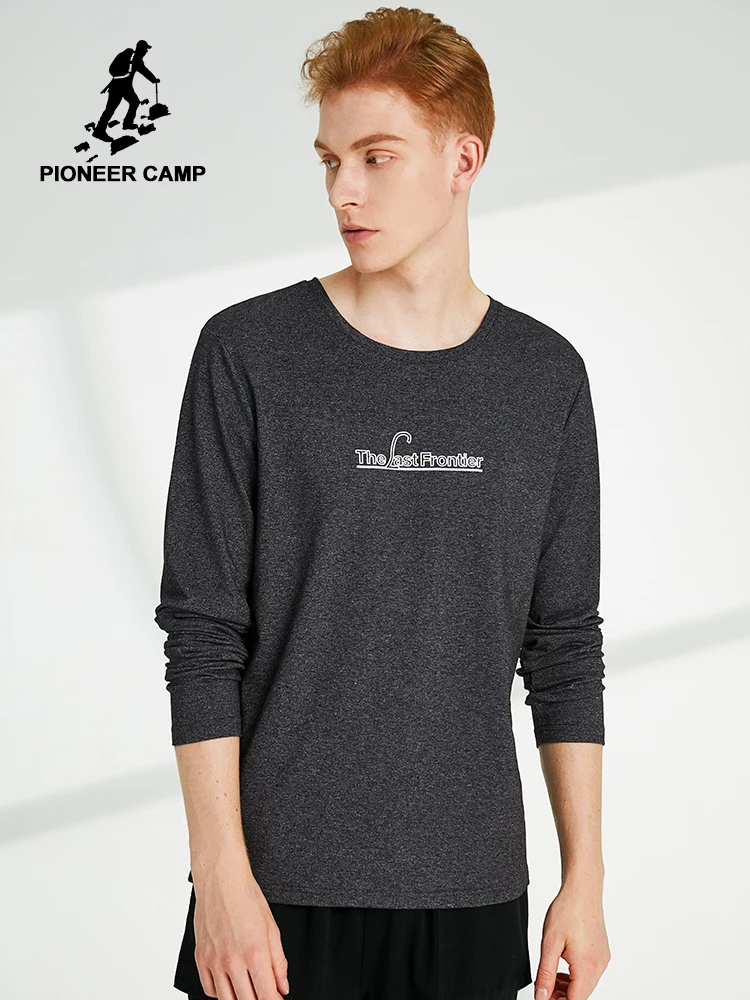 Pioneer Camp простая футболка с длинными рукавами мужская одежда с буквенным принтом Осенняя футболка с вырезом лодочкой розовая хлопковая футболка цвета хаки Топы ACT901273