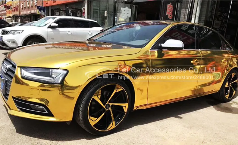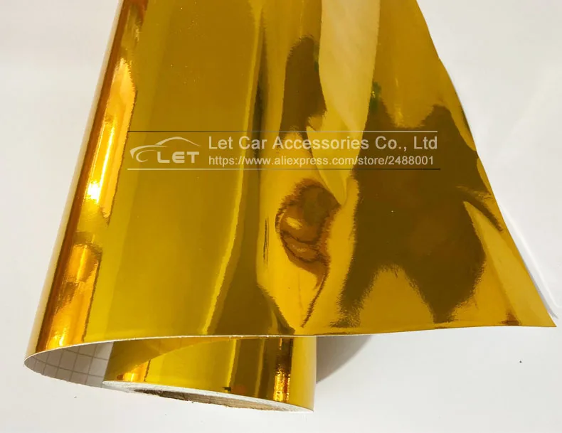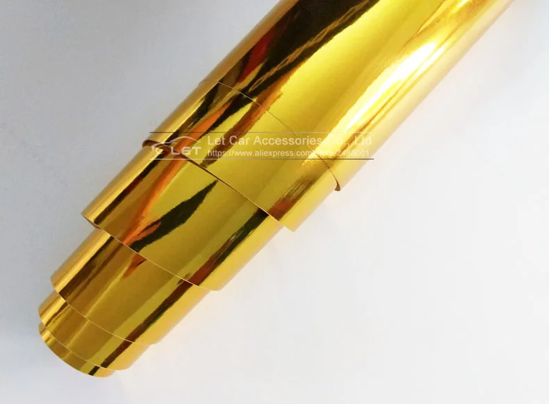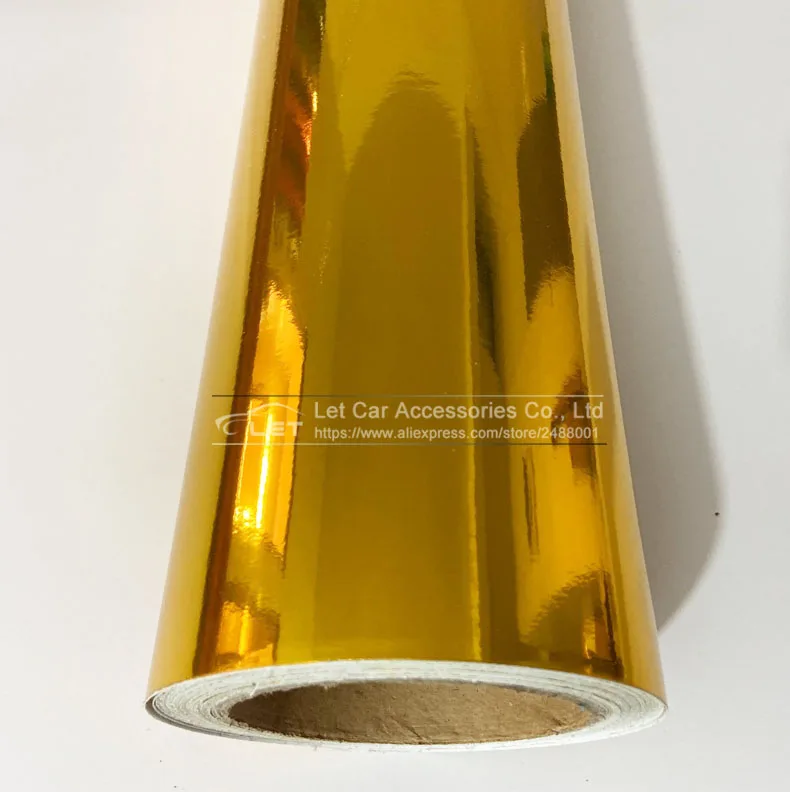 Золотая, золотая, хром, безвоздушная зеркальная виниловая пленка, наклейка, лист, наклейка, клейкая эмблема, Стайлинг автомобиля