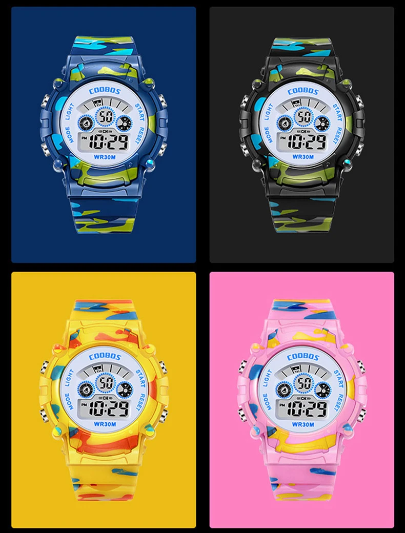 Часы камуфляжные детские, для мальчиков и девочек, с цветным светодиодным индикатором