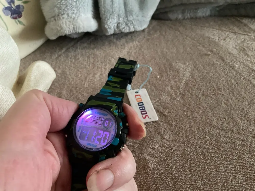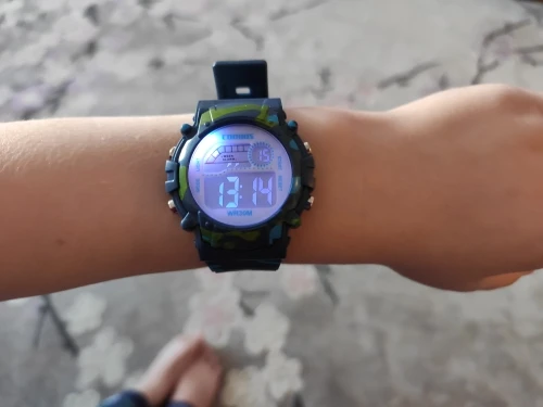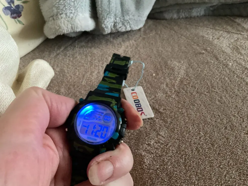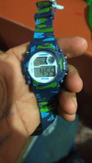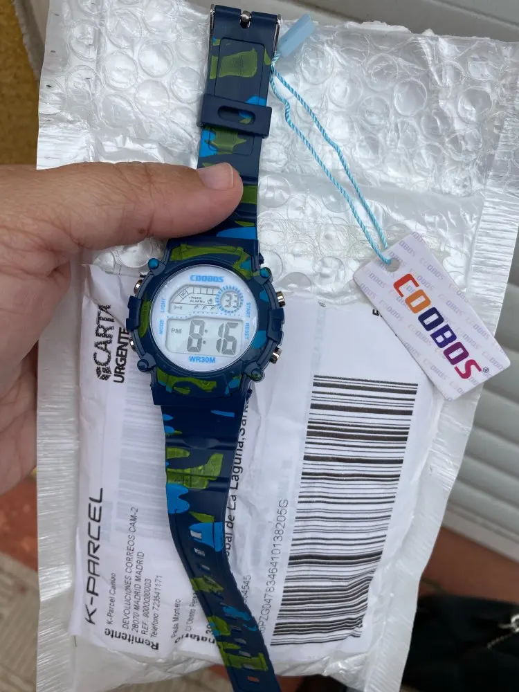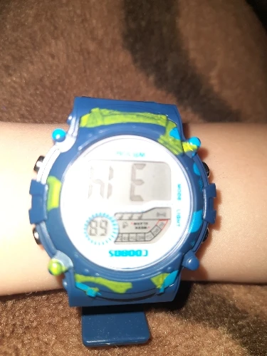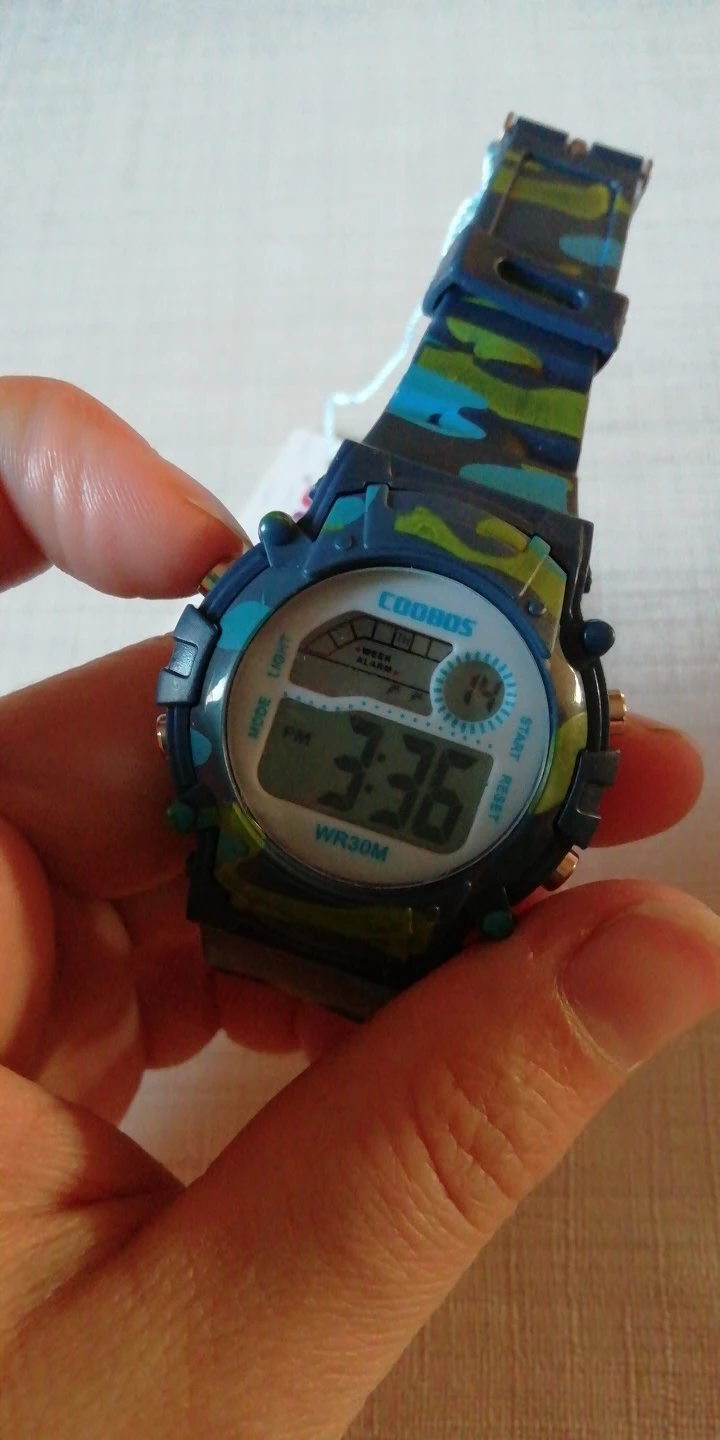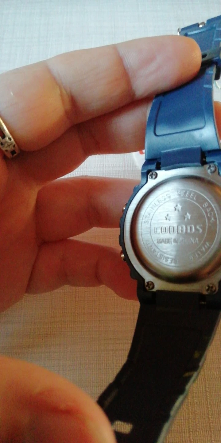 Часы пришли относительно быстро в Украину. Упакованны в пупырку, есть инструкция на англ и китайском. Ро кнопкам интуитивно понятно:секундомер/подсветка/установка времени и дней недели. На руку 5 летнего ремешок застегивается на последнее деление, делений в ремешке много. Корпус и ремешок из пластика.