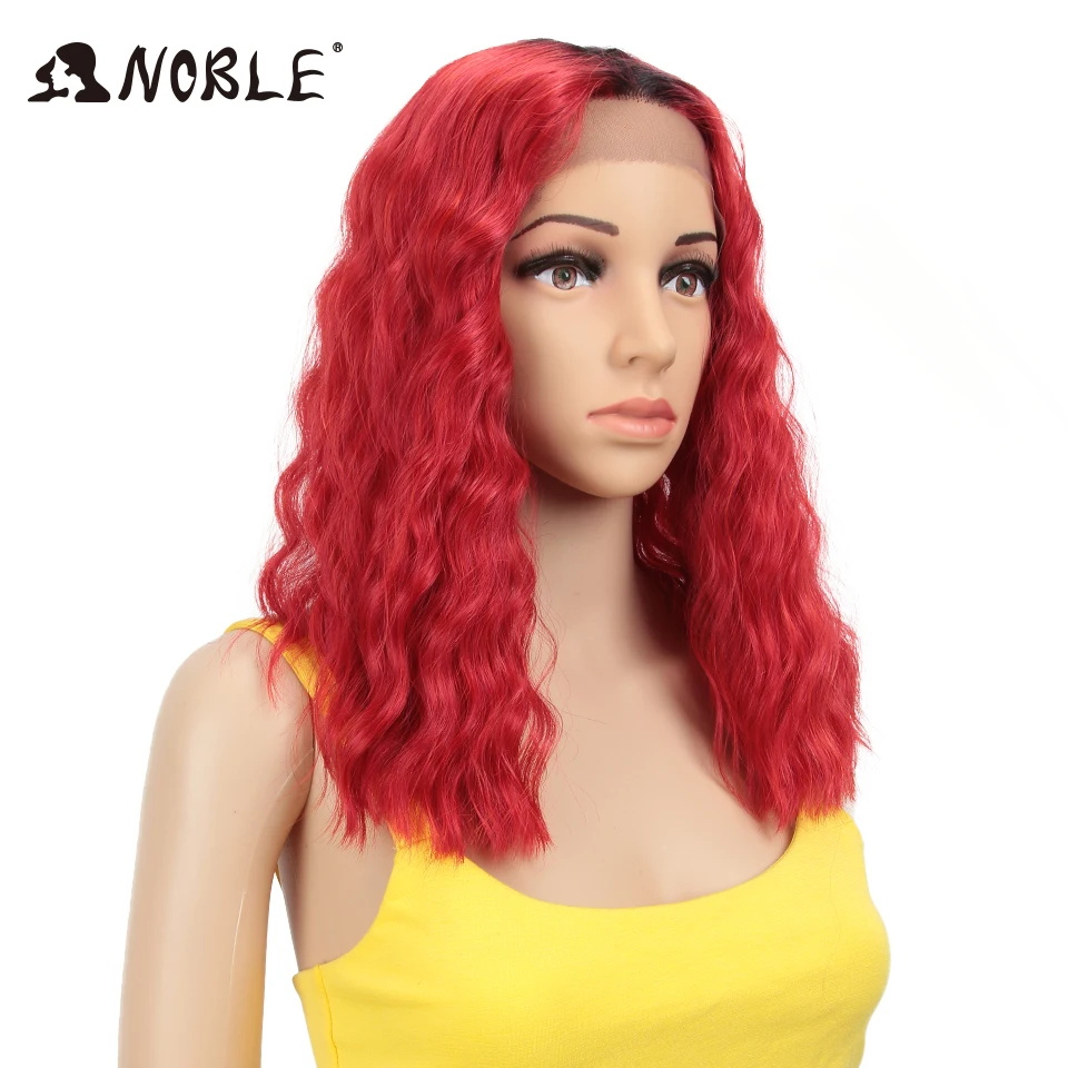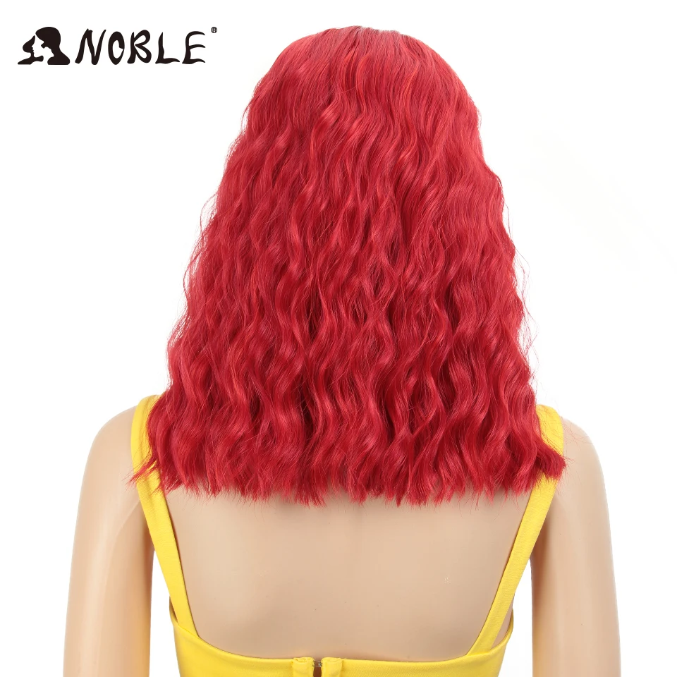 Благородные 14 "синтетические парики, красная челка, водная волна, термостойкие синтетические парики для чернокожих женщин, африканская американская кружевная передняя часть Wg