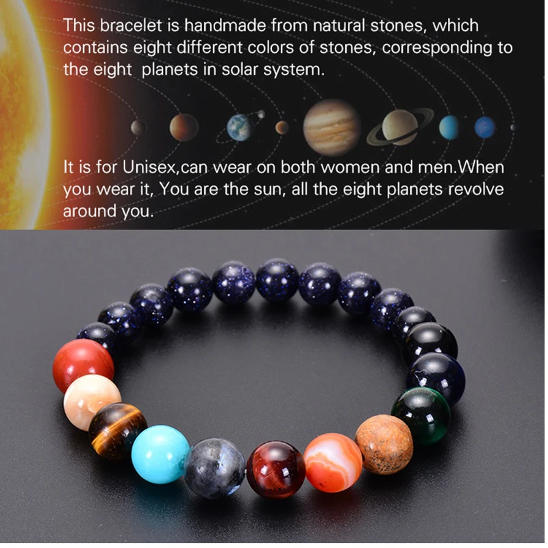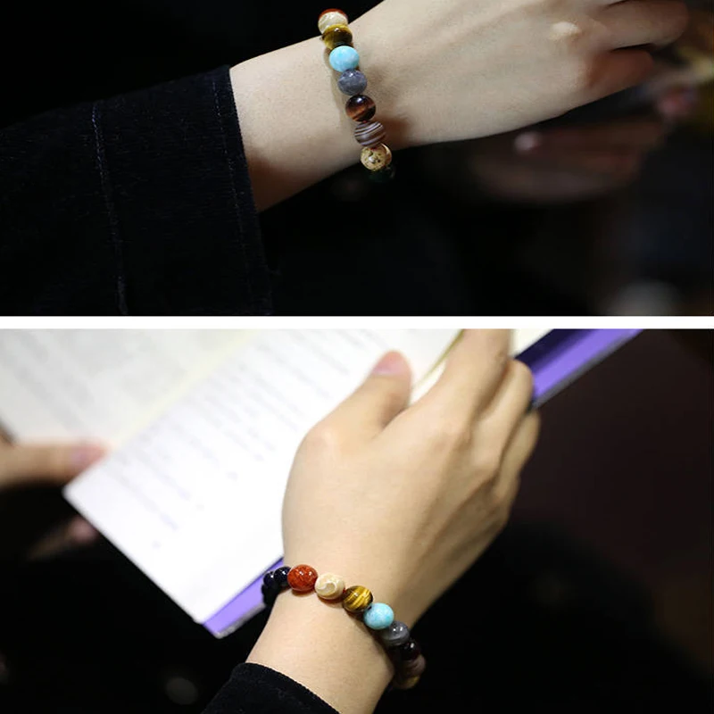 Браслет для мужчин и женщин, браслет из натурального камня с бусинами, чакрами, браслетом для йоги, Вселенной, Солнечной системой, планетами, очаровательные ювелирные изделия