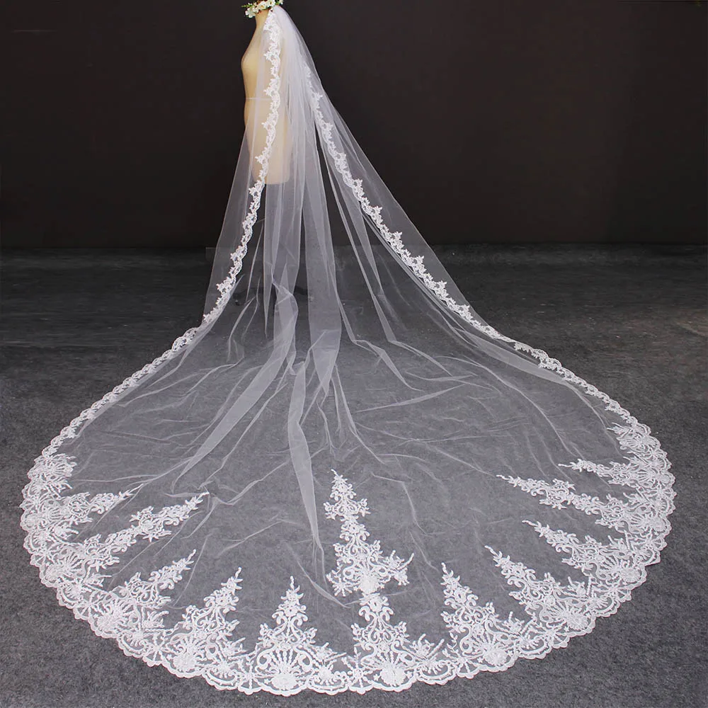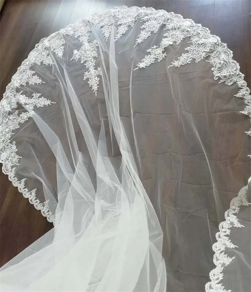 Высококачественная Изящная кружевная фата длиной 4 метров, Свадебная Фата с расческой, 400 см, однослойная свадебная фата, свадебные аксессуары, вуаль для невесты