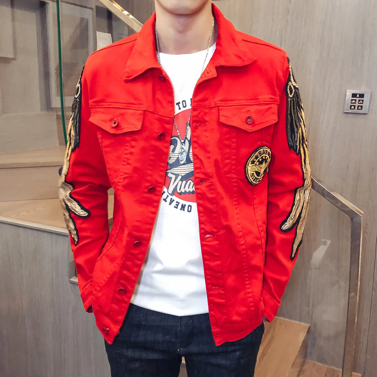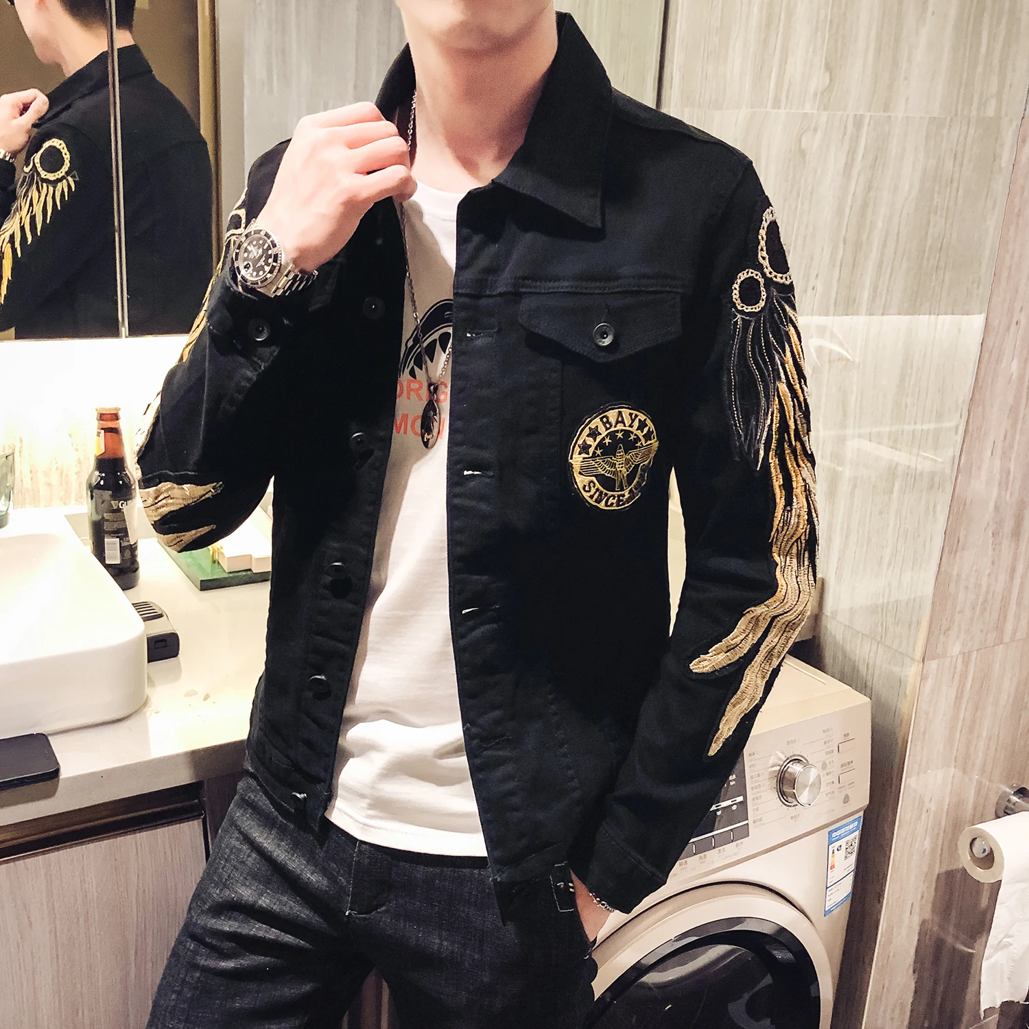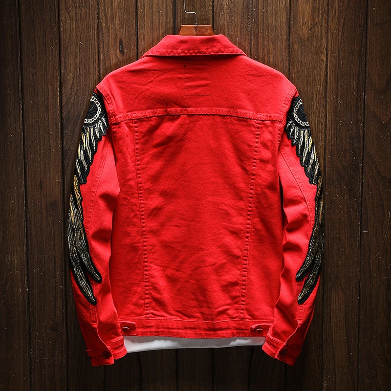 Мужская джинсовая куртка с вышивкой крыльями, приталенная джинсовая куртка в стиле ретро, 2022