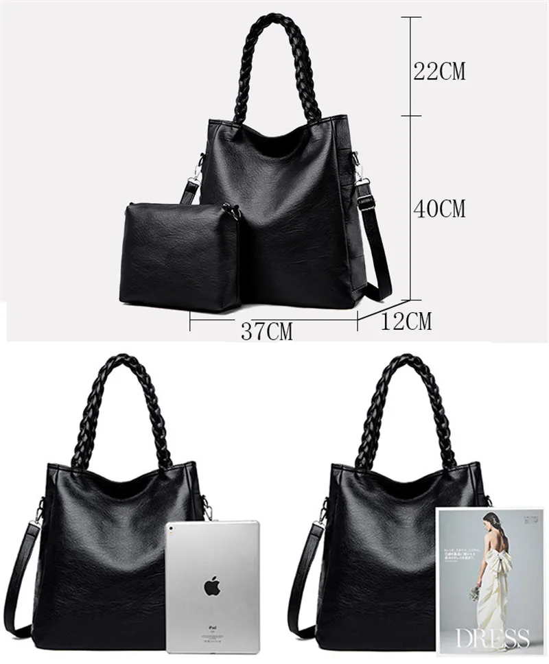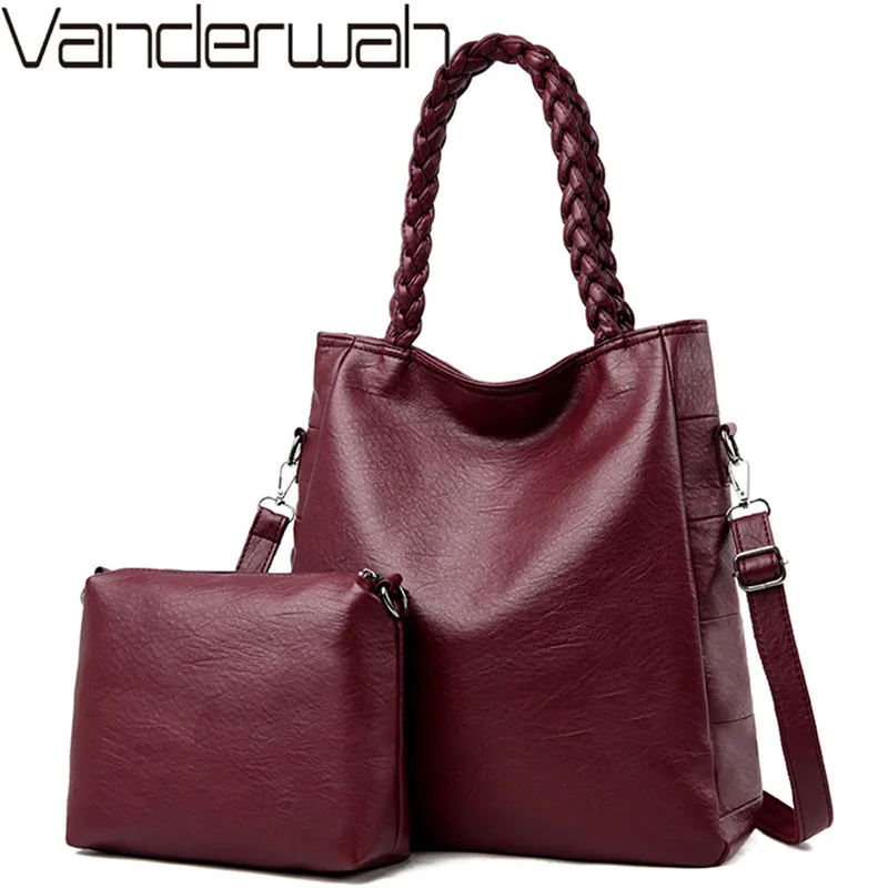 Сумка женская из натуральной кожи, 2 комплекта, большая, сумки-шопперы для женщин, 2019