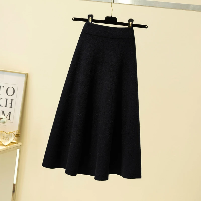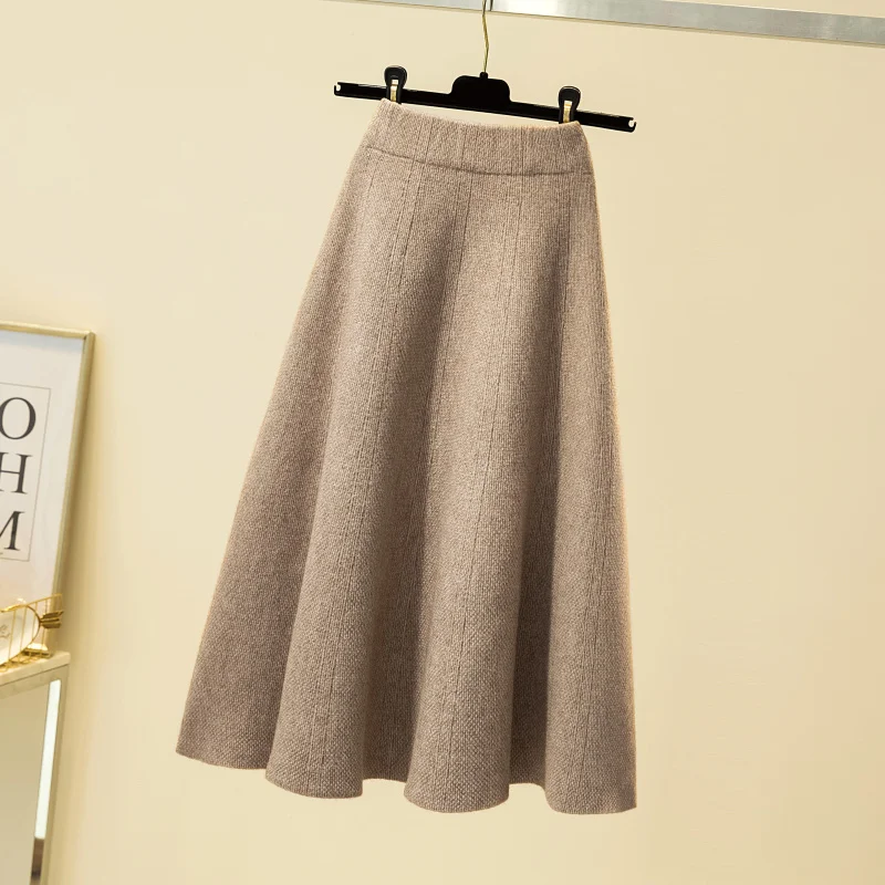 Осенне-зимние длинные вязаные юбки-клеш из смесовой шерсти
