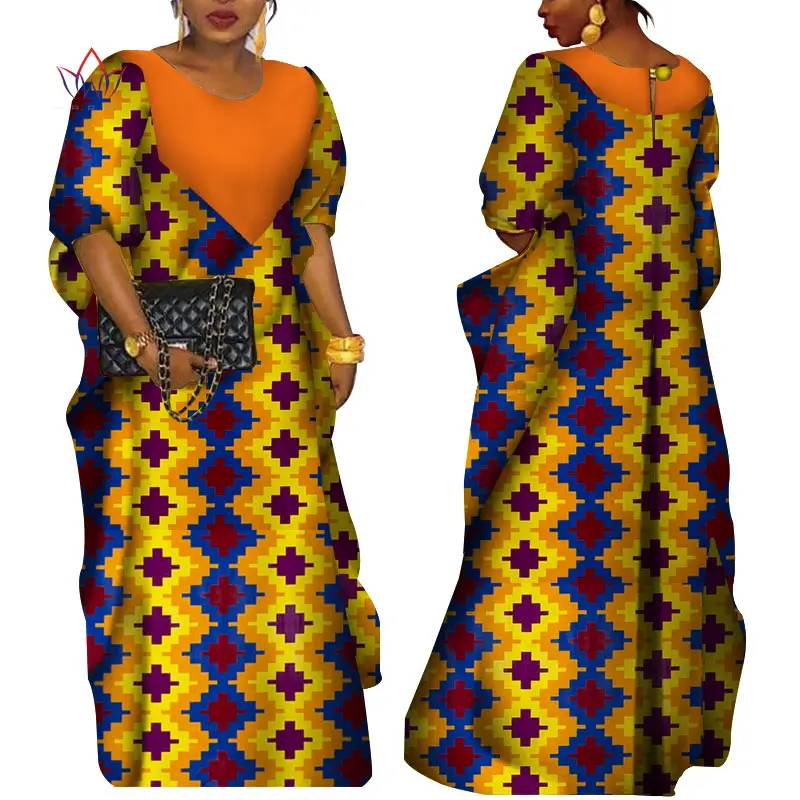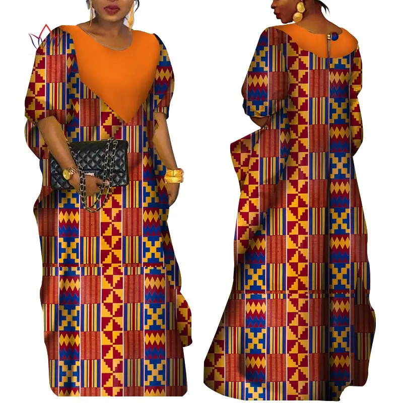 Традиционная африканская одежда для женщин, повседневные свободные платья макси в стиле пэчворк, Элегантное Длинное Платье 4XL, африканская одежда WY3700, размера плюс