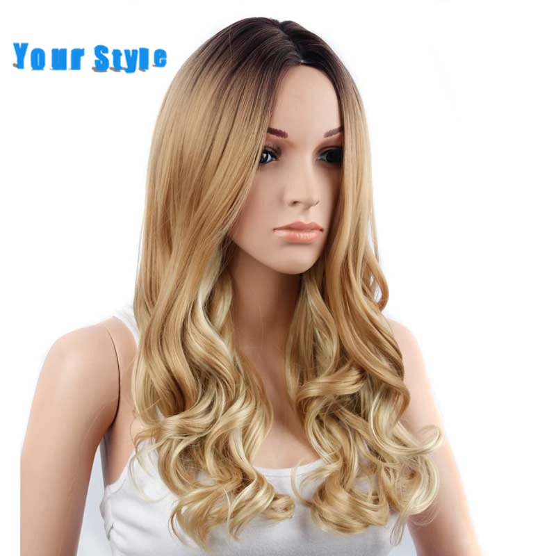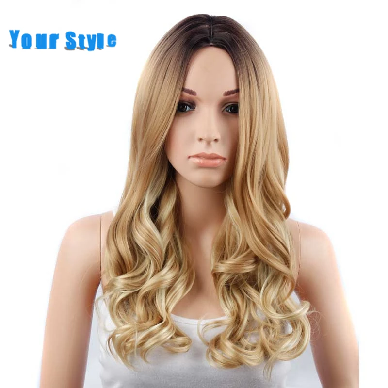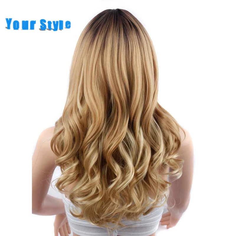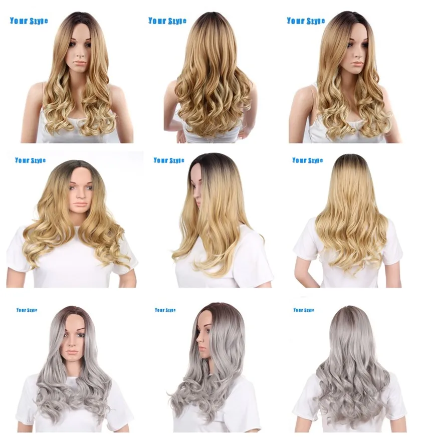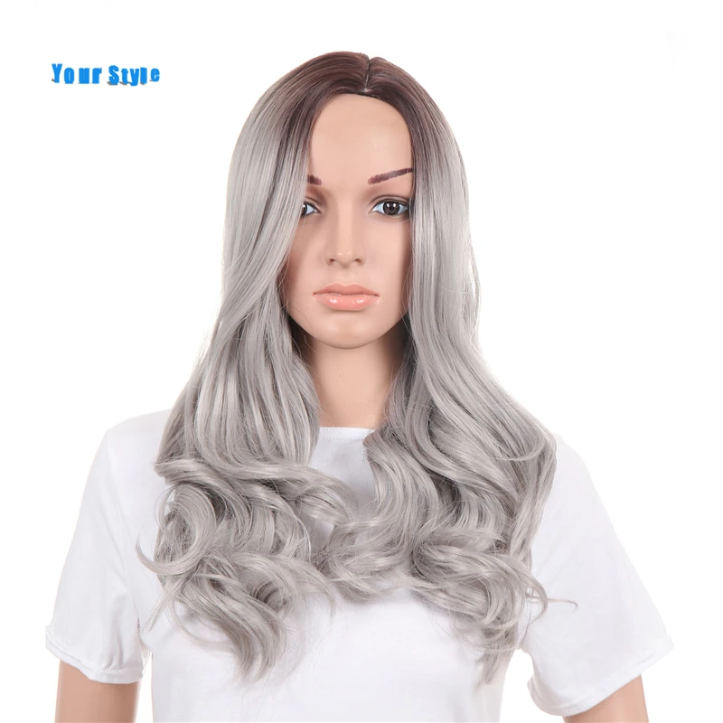 Your Style Synthetic Long Wavy Cosplay Wigs Female Women High Temperature Fiber Ombre Gray Brown Color