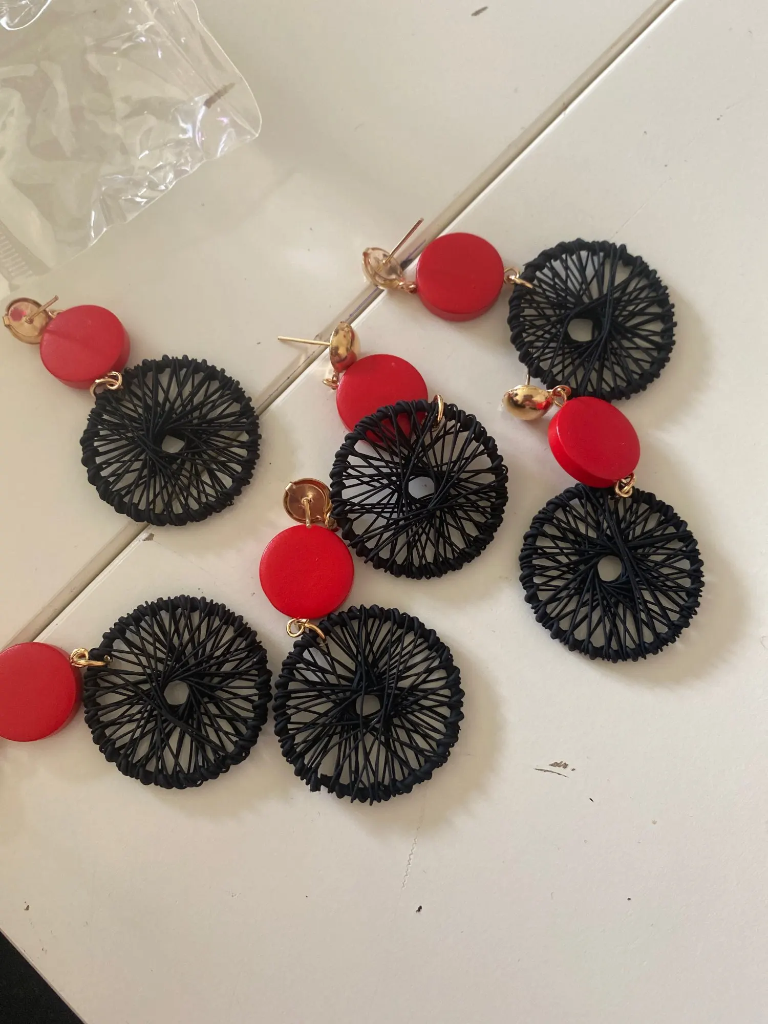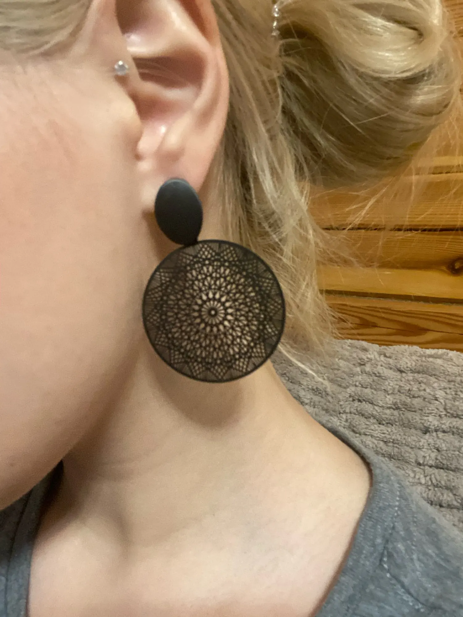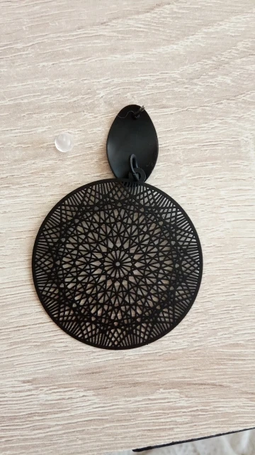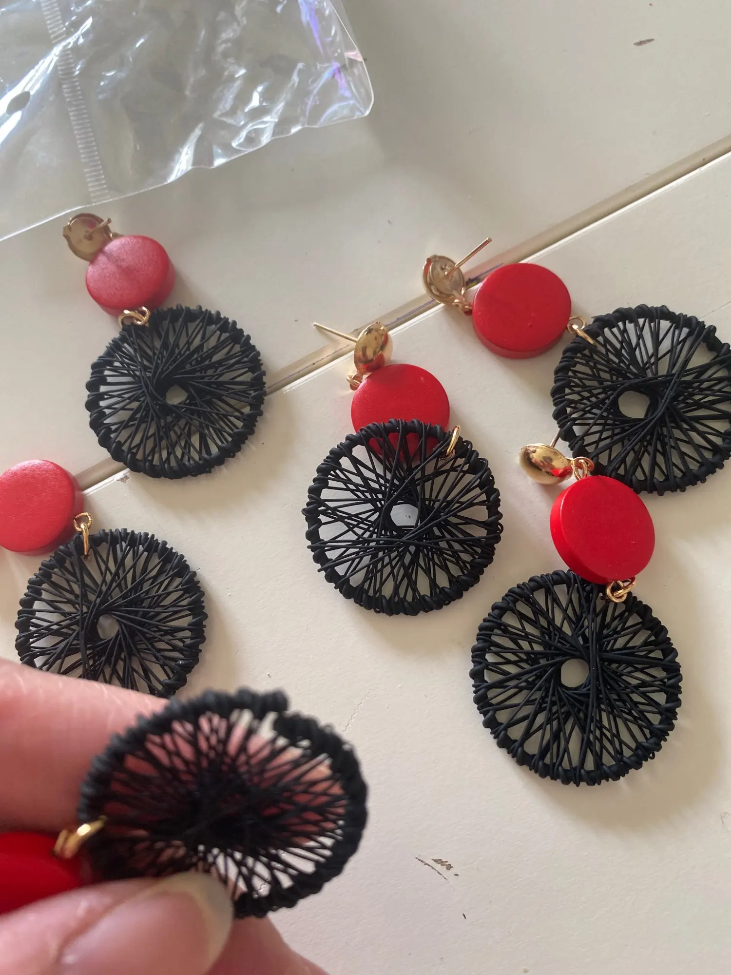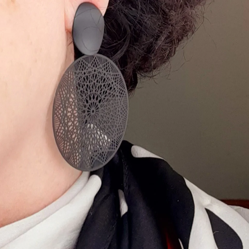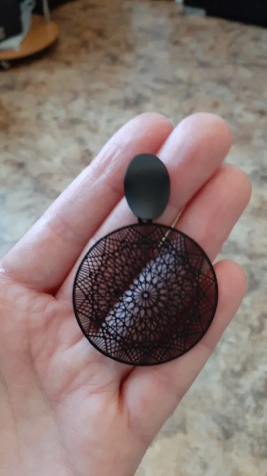 Красивые, тонкие, легкие серьги. Доставка три недели, т. к. объединили с другими товарами. Вроде металл, но не магнитятся. На одной колечко припаяно кривовато, но в глаза не бросается, да и стоимость низкая (50 р). Других недостатков не нашла. Толщина примерно 0,2 мм, так что легкие, в ушах не ощущаются, если головой не крутить. Упаковка - тонкий пакетик, плюс почтовый пупырчатый. Подозреваю, что погнулись бы, если бы не объединение посылок. Несколько раз носила по 3-4 часа, уши не болели. Мои уши в целом нечасто реагируют на серьги. Цвет - черный матовый.