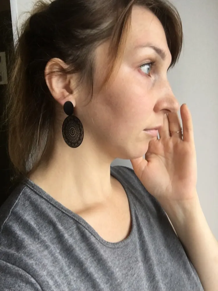очень милые,красивые,утонченные,качественные,невесомое и т.д.все в положительную сторону. при одевание у кого мочки ушей уже провисли эти серьги закрывают дырочку и содятся аккуратно и комфортно.спасибо продавцу и изготовителю.